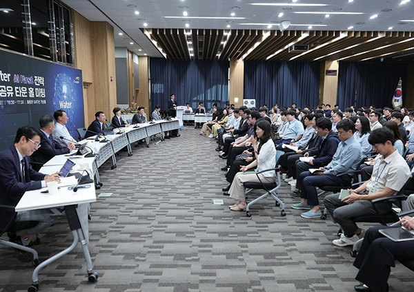 K-water held the “AI First Strategy Vision Sharing Townhall Meeting” on September 29, attended by CEO Seogdae Yun, executives, and 120 staff members. The event aims to review the outcomes achieved by the AI First Strategy Planning Group launched in June and explore AI transformation strategies that allow employees from various fields to experience the changes first-hand.