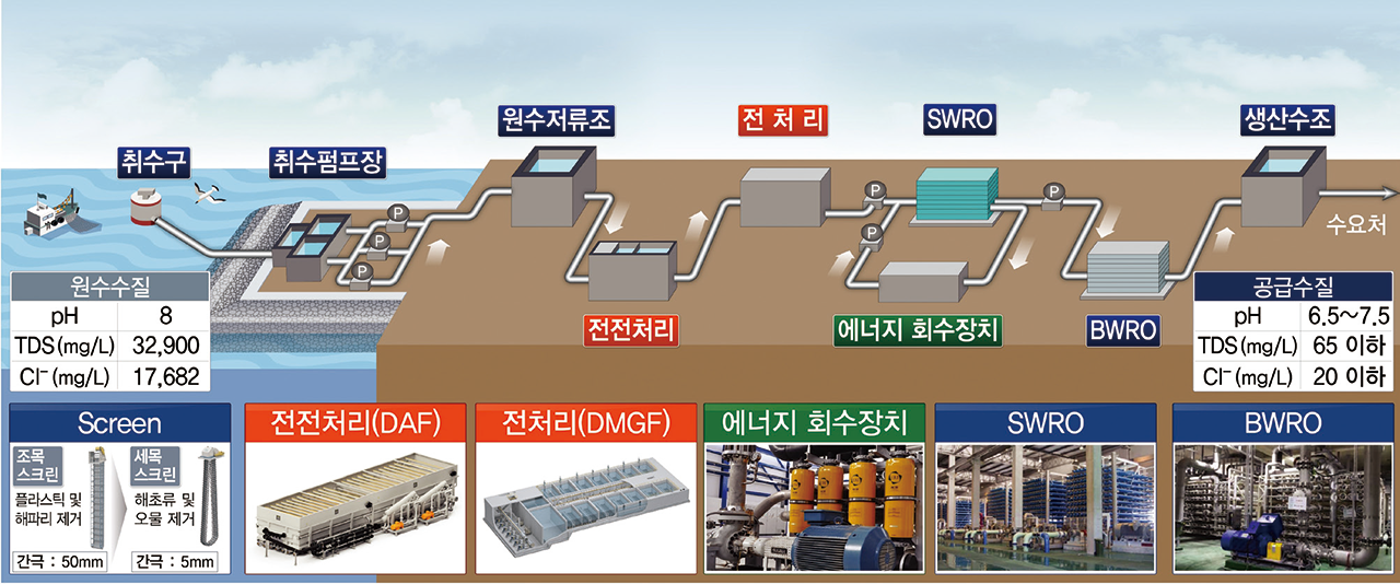기후변화로 인한 물 부족은 산업 성장과 국민 생활에 직결되는 문제다. 해수담수화는 고갈되지 않는 수원을 기반으로 한 실질적인 대안이자, 국가 물 안보를 뒷받침할 전략 자산이 될 수 있다. 그러나 해수담수화 기술은 다른 수처리 공정보다 에너지 소모가 크다는 단점을 가지고 있다. 이에 한국수자원공사는 에너지 저감, 친환경 공정 기술 등 연구개발을 통해 담수화 시설의 운영 효율을 높이는 동시에 경제성을 높이며 글로벌 경쟁력 확보에 나서고 있다.