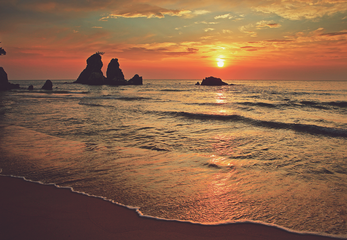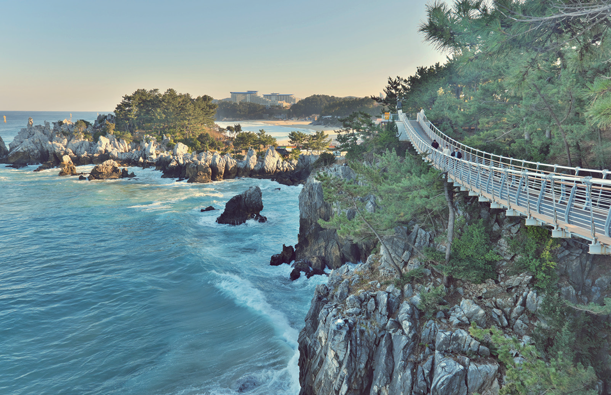 Located at the southern edge of Donghae City, Chuam Beach has long been known as “Haegumgang” and is considered one of the finest scenic spots in the Yeongdong region. It once gained fame as the background image for the opening line of the national anthem, establishing itself as a nationally renowned sunrise destination. As a result, countless visitors gather here every year to witness the first sunrise of the New Year. Chuam (錐岩) means “cone-shaped rock,” and true to its name, sharply rising rock formations emerging from the sea blend with the ocean to create a unique landscape.
