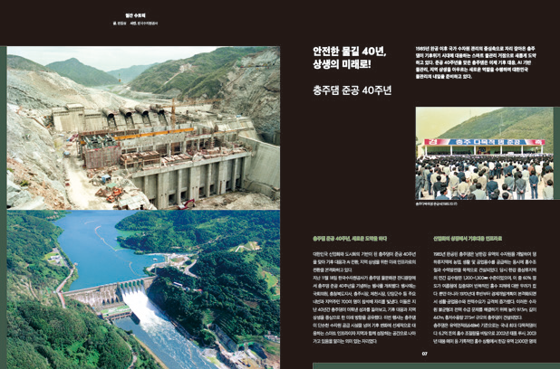 - ‘안전한 물길 40년, 상생의 미래로!-충주댐 준공 40주년’ 기사를 읽으며, 어릴 적 부모님과 함께 충주댐을 보러갔던 기억이 떠올랐습니다. 벌써 40년이 지났다니 시간이 참 빠르네요. 우리의 일상을 풍요롭게 해준 충주댐에게 고마운 마음을 전하고 싶습니다.