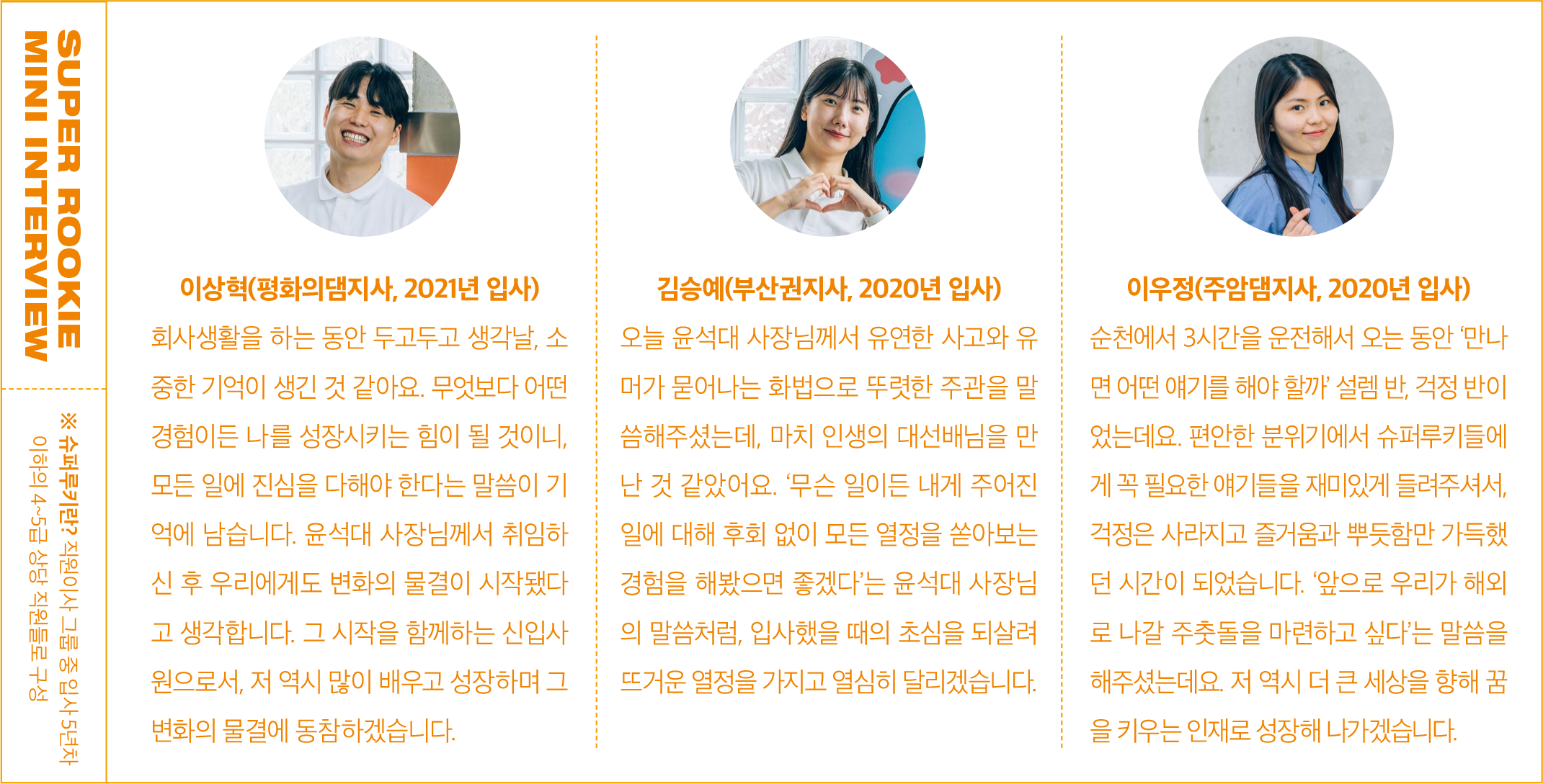 사장님의 말씀이 사회생활을 시작하는 저희에게 든든한 디딤돌이 될 것 같습니다. 저는 조금 다르게 질문을 돌려서 드리겠습니다. 과거 신입 시절에 ‘저런 모습은 닮지 말아야지’하고 반면교사로 삼고 싶은 모습이 있으셨나요?