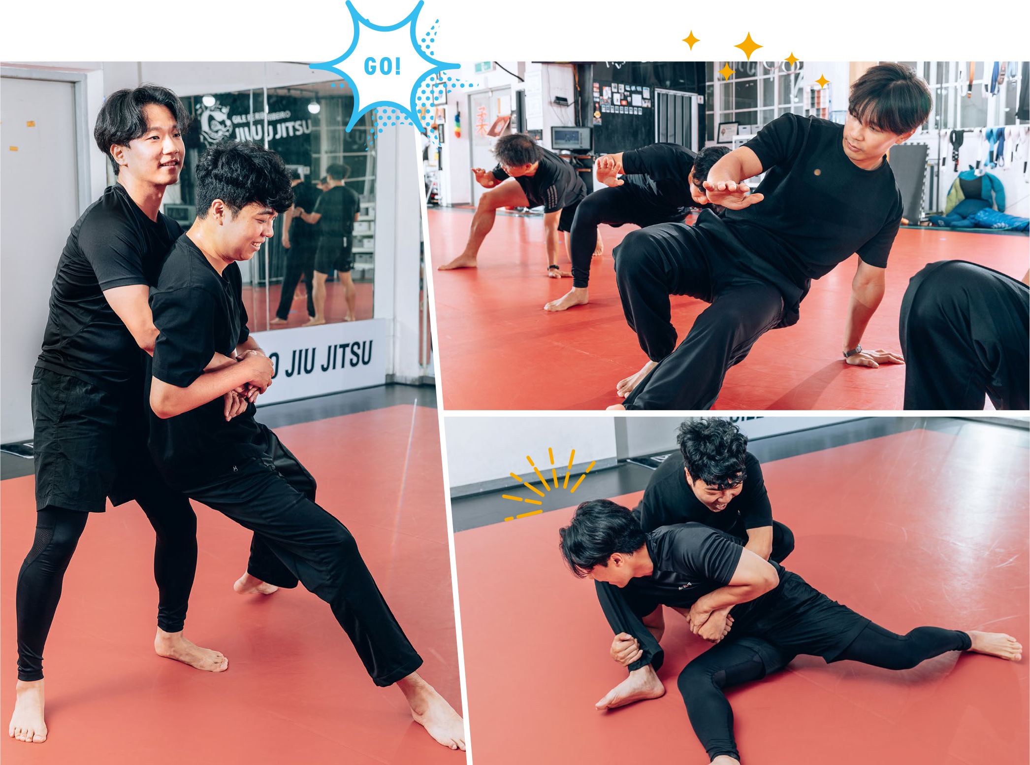 ‘호신(護身)’은 말 그대로 ‘내 몸을 지킨다’는 뜻이다. 주짓수는 다른 운동에 비해 ‘호신’의 성격이 좀 더 강하다. 누군가 갑자기 나를 공격하는 일은 내 힘으로 막을 수 없다. 그렇다면 이 막을 수 없는 상황에서 내가 할 수 있는 일은 무엇일까? 이번 주짓수 원데이 클래스는 막을 수 없는 상황에서 내가 할 수 있는 일을 찾기 위한 시간이었다. 운동을 전문적으로 배우지 않은 일반인들이 위급한 상황에서 큰 힘을 발휘할 수 있는 가능성은 매우 적다. 이런 점에서 주짓수는 비전문가들에게도 매우 유익한 운동이다. 적은 힘으로 큰 공격을 할 수 있는 효율적인 동작이 많기 때문이다. “작은 힘으로도 위험한 상황에서 탈출할 수 있다는 점이 주짓수의 매력이라고 생각해요.” 성한수 사원의 말이 위험한 상황을 겪을 수 있는 모든 비전문가들의 입장을 대변한다. 이번 주짓수 체험은 원데이 클래스였지만, 참가자들이 배운 동작은 오랫동안 그들의 안전을 지켜줄 것이다.