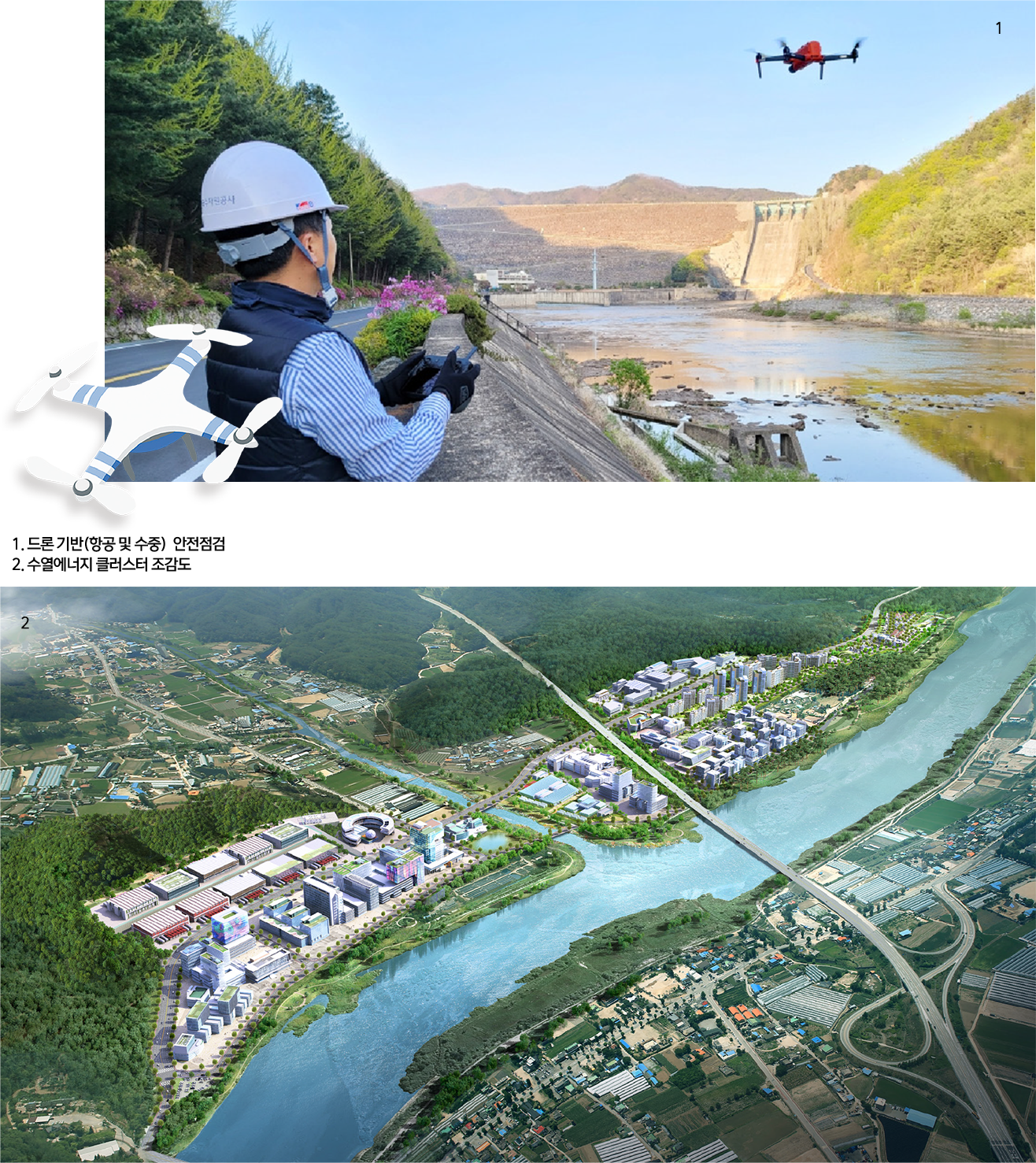 소양강댐은 수력발전을 넘어 신재생에너지 생산기지로 도약할 예정이다. K-water는 지난 2021년부터 소양강댐 심층수를 수원으로 수열에너지를 생산해 4차산업혁명 데이터센터 설비 냉방에 활용하는 ‘수열에너지 융복합 클러스터’ 조성사업을 추진하고 있다. 수열에너지란 수온이 여름철에는 대기온도보다 낮고 겨울철에는 대기온도보다 높은 댐호소수, 원수관로, 하천수 등의 수열원을 열펌프로 회수해 냉난방 등에 이용하는 것이다. 소양강댐은 연중 7℃를 유지하는 차가운 물이 풍부해 수열에너지의 요충지로서 주목받고 있다. 2021년 3월 강원도 수열에너지 융복합 클러스터 투자선도지구로 지정되어 본격적인 사업추진에 돌입, 2023년 5월에 인허가를 마쳤다. 2027년까지 클러스터 조성을 완료한 후 2028년부터 2057년까지 30년간 친환경 데이터센터 집적단지와 스마트팜(첨단농업단지)에 수열에너지를 공급해 냉난방에 활용할 계획이다. 수열에너지를 데이터센터 및 스마트팜의 냉난방에너지로 공급 시 화석 연료량의 64%를 절감할 수 있는 효과가 있다. 2023년 10월 예정인 강원 수열에너지 클러스터 착공식은 소양강댐 준공 50주년 기념행사와 연계하여 물산업 미래비전을 제시하고 지역 경제발전 인프라로 인식 대전환의 계기를 마련할 예정이다. 향후 ‘강원도 수열 클러스터’의 성공적 사업모델을 바탕으로 대청댐 수열 클러스터 시범사업 기본계획 수립 등 전국 다목적댐을 대상으로 하는 수열 기반 클러스터 조성 확대 또한 추진할 계획이다. 또한, 태양광 모듈을 댐, 저수지 등 수면에 설치하여 에너지를 생산하는 친환경 발전시설인 수상태양광을 통해 재생에너지를 생산한다. 자연훼손 없이 친환경적으로 설비를 설치할 수 있을 뿐만 아니라 물이 가지고 있는 차가운 성질 덕에 수면 위 냉각 효과로 땅 위에 설치한 태양광보다 약 5% 정도 높은 발전량을 자랑한다.