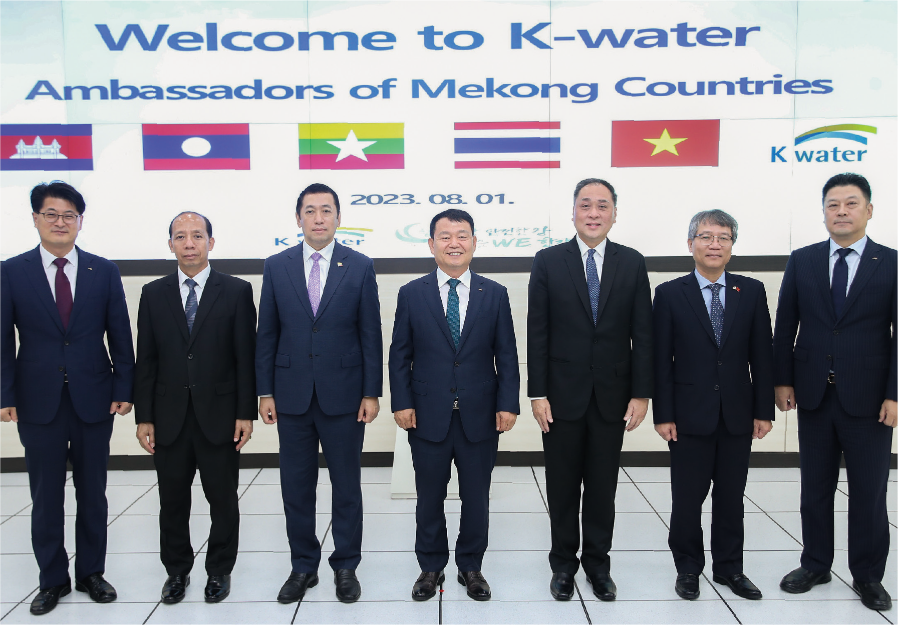 K-water had a meeting with the ambassadors of Cambodia, Laos, Myanmar, Thailand, and Vietnam on August 1 regarding the enhanced cooperation between Korea and the five Southeast Asian countries regarding the management of water of the Mekong. Held at K-water’s Hangang Catchment Basin HQs, the meeting saw the participants exchanging ideas about the projects implemented by K-water in the Mekong River basin, including those to renovate the water service facilities in Battambang Province, Cambodia, and the climate-adaptive flood forecast and warning system for the Sebanghiyang River Basin in Laos. The participants also talked about the measures for closer cooperation between the countries concerned through the Korea-Mekong Water Management Center, an institution run by K-water, and new projects that may help solve water-related problems between the Mekong countries.