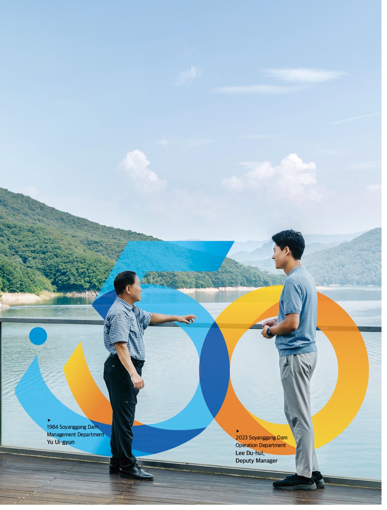 You’re absolutely right. For me personally it’s a great honor to join you in celebrating the 50th anniversary of Soyanggang Dam and have a talk with you about its history of ordeal and glory in which you and your colleagues played an important part for its development. I am confident that I will be here next year, too, preparing for a new period of half a century and that today’s meeting with you will remain a firm steppingstone for me to devote myself to the future glory of Soyanggang Dam. I hope that when the dam celebrates its centennial fifty years later someone working in the office where I do now will come find me and have a talk just like the one we have today. (laughter)