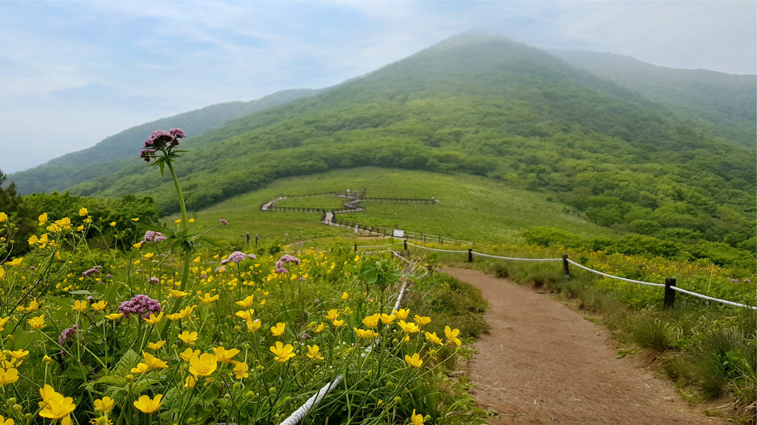 Could there even be such a wonderful garden in another part of the world? It’s a wonder how such a large colony of vibrant wild flowers flourished on a mountain ridge such as Gombaeryeong. The ridge is a large grassland without a single tree, because wind blowing over this part of the mountain is too intense to allow anything to stand firm. The wind may have always been strong, but could not keep the wild flowers from taking root and growing against it.