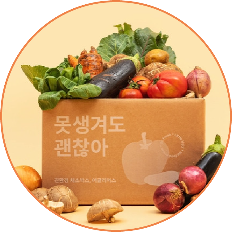 모양과 크기 때문에 등급 외로 분류되어 판로 부족 문제가 발생한 농산물을 구출해 20% 저렴한 가격으로 소비자에게 배송해주는 어글리어스 마켓. 플라스틱 포장이 없는 친환경 패키징까지 추구한다. 어글리어스 마켓은 가족 구성원 수에 맞춰 1~2인 가구, 3~4인 가구에 맞는 양의 농산물이 배송된다. 먹고 싶지 않거나 못 먹는 채소가 있다면 최대 5개까지 구독에서 제외할 수 있다. 이 밖에도 기타 농산물을 단품으로 구매할 수 있고, 요리법 등을 제공해 구매부터 레시피까지 원스톱 서비스를 이용할 수 있다.