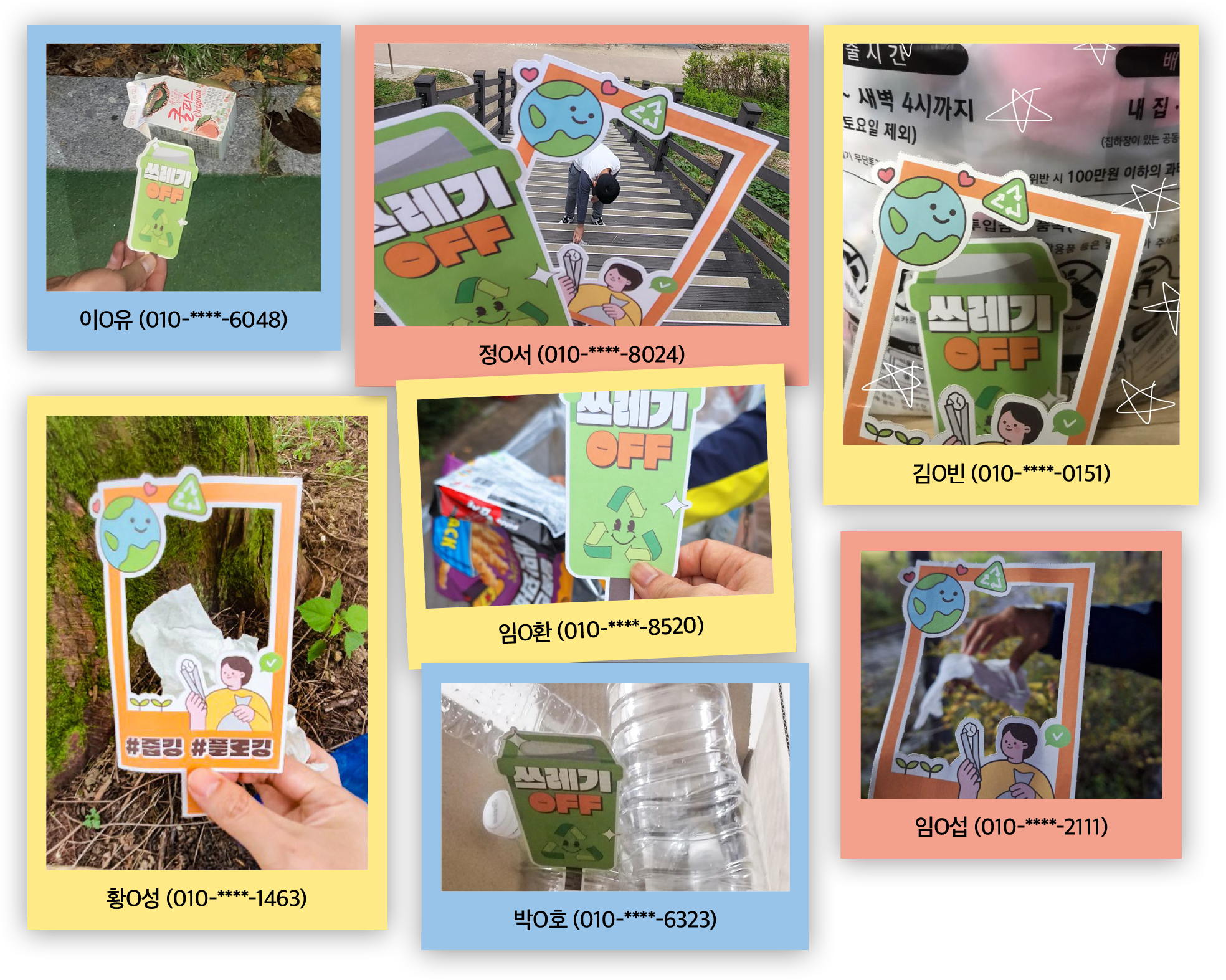 10월호 ‘쓰레기 OFF’ 챌린지에 참여해주셔서 감사합니다! 추첨을 통해 선정한 정성 가득한 작품을 소개합니다. 11월호 ‘일회용품 OFF’ 챌린지에도 많은 참여 부탁드립니다!