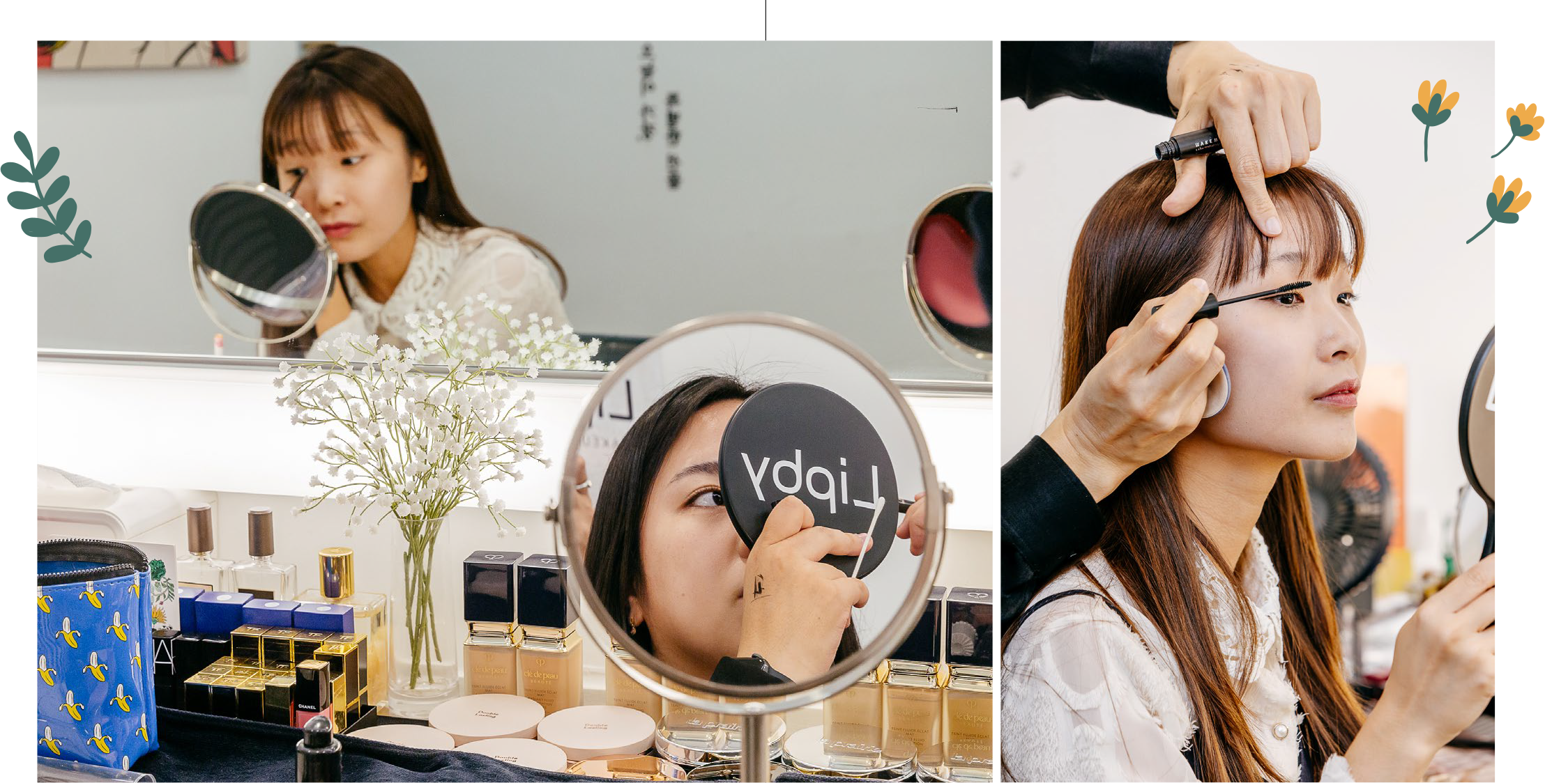 전문가에게 메이크업을 배워보는 건 처음이라는 세 사람. 화장대를 빼곡하게 채운 다양한 메이크업 제품들을 보는 것만으로도 ‘아름답게 변신할 서로의 모습’이 상상되어 가슴이 두근거린다. 세 사람은 소위 말하는 ‘쌩얼’, 그러니까 서로의 메이크업 전 모습을 익히 알고 있는 사이다. 정윤경 대리와 문지은 대리는 서로 근무지가 달라지기 전까지 룸메이트로 함께 살았고, 서혜연 대리는 두 사람의 집에 가장 자주 놀러 오는 단골손님이었다. 맛있는 요리를 해 먹고 수다를 떨기도 하고, 여름에는 바다로, 겨울에는 스키장으로 여행도 많이 다녔다. “풀메이크업을 한 모습이 오히려 낯선 사이예요”라는 얘기에 절로 고개가 끄덕여진다.