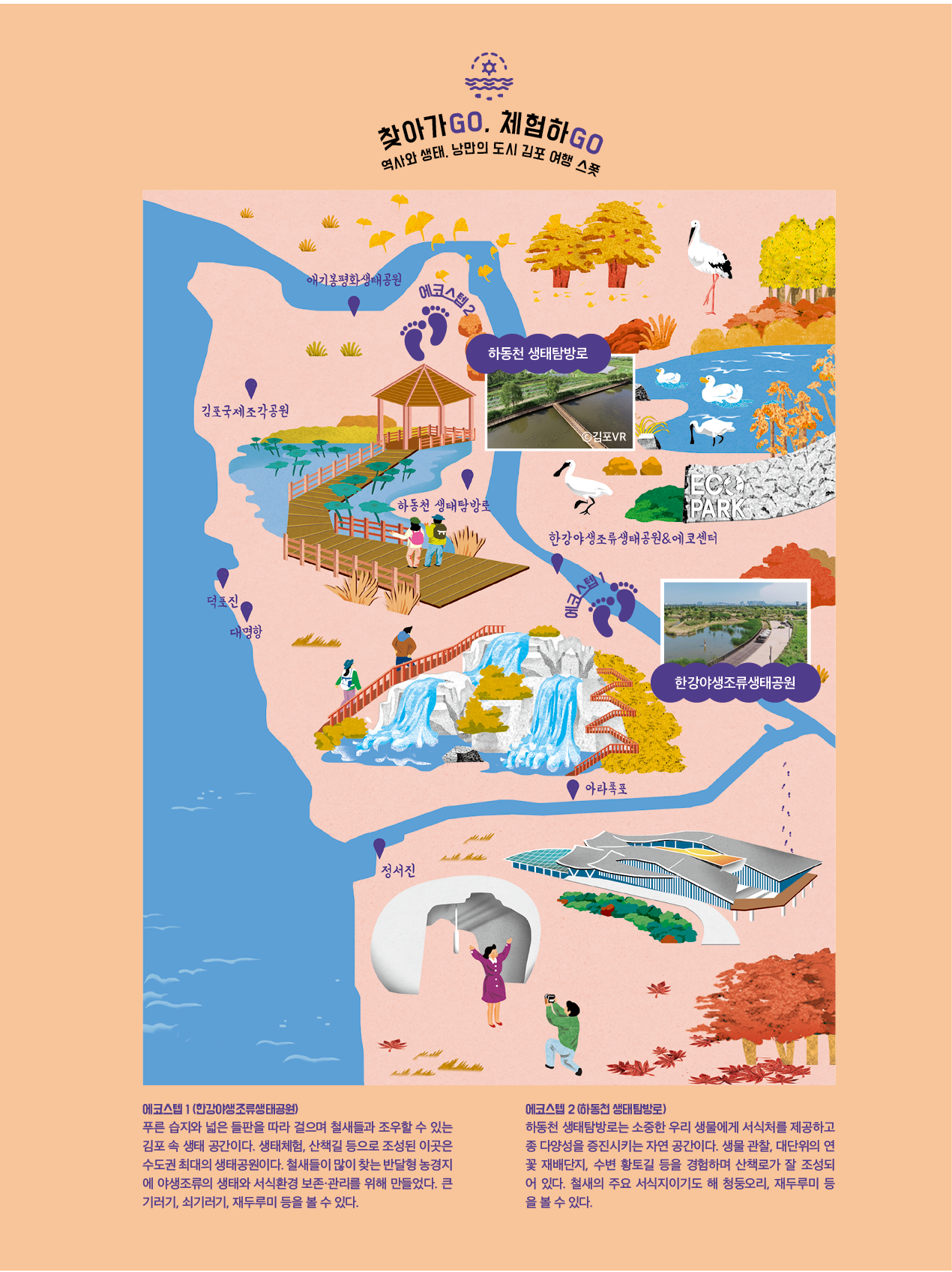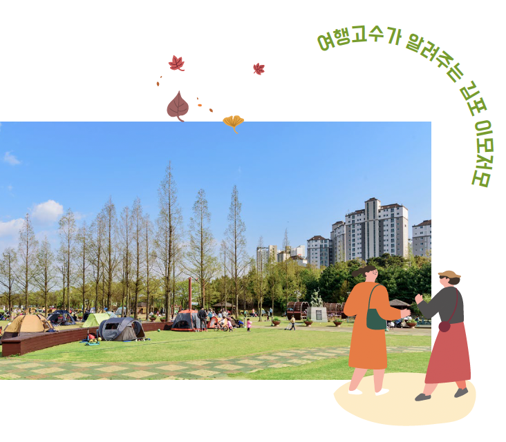 옛 추억과 그보다 더 오랜 역사, 곳곳에 쉬어갈 초록의 공원과 풍성한 바다, 강까지. 이곳에서 남녀노소 할 것 없이 추억을 더듬고 새로운 추억을 만든다. 김포는 그런 곳이다. 오랜 역사와 추억, 이야기 그리고 오늘의 낭만과 미래가 함께 있다.