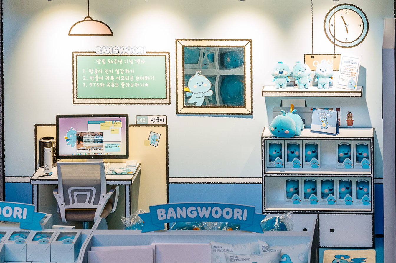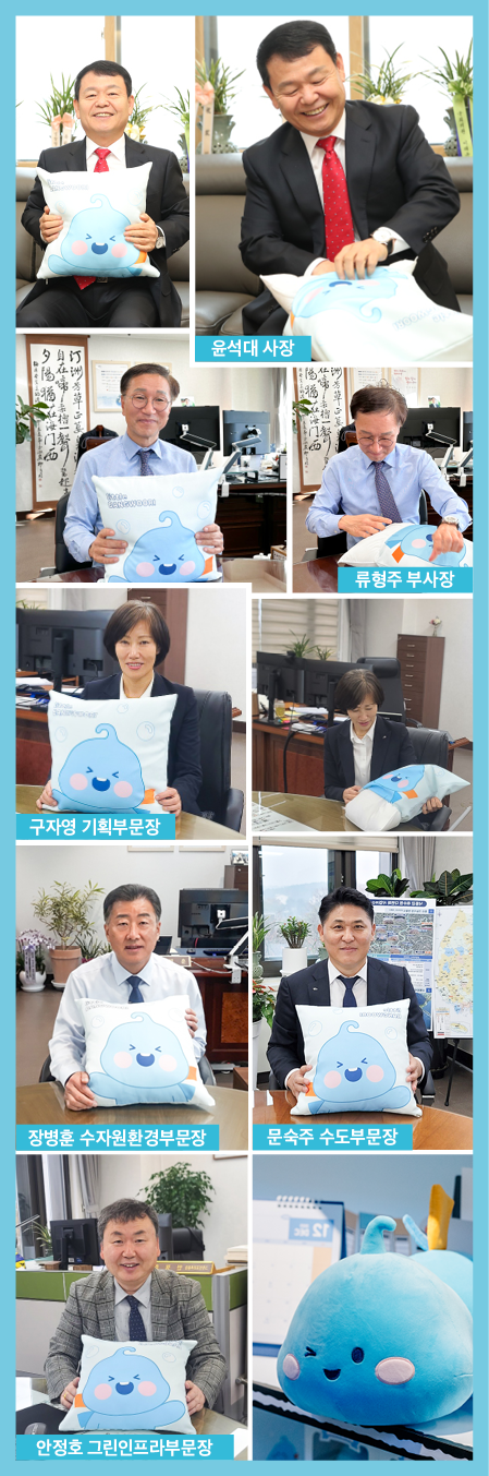 빗방울이 떨어지던 11월의 어느 날, 대전 K-water 본사에는 또 다른 물방울이 모습을 드러냈다. 수많은 사람들을 한 곳으로 모두 모이게 한 아주 특별한 물방울. 그 정체는 바로 K-water의 마스코트 ‘방울이’다. 11월 16일, 창립 56주년을 맞아 방울 대리 오피스 콘셉트의 팝업스토어를 선보인 것. SNS를 통해 많은 이들의 사랑을 듬뿍 받고 있는 방울이 캐릭터를 활용해 만든 인형, 쿠션, 볼펜, 달력 등을 판매하는 팝업스토어 행사가 개최되었다. 행사 시작 전부터 방울이 굿즈를 구매하기 위해 몰려든 사람들로 인산인해를 이루었고, 계단을 따라 2층까지 이어진 줄은 방울이의 인기를 실감케 했다. 방울 대리의 오피스에는 굿즈뿐 아니라 기념사진을 찍을 수 있는 포토존과 인형뽑기 구역까지 준비되어 보다 다채롭게 방울이를 만날 수 있었다. 특히 이번 행사에서는 윤석대 사장을 비롯한 모든 임원진이 직원들을 위해 직접 쿠션을 만드는 등 방울이에 대한 애정을 보였다. 임원진들이 직접 솜을 채워 넣은 쿠션은 스토어가 오픈한 지 얼마 지나지 않아 품절되기도 했다. 양손 가득 방울이를 데리고 스토어를 나서는 K-water 임직원들의 얼굴에는 미소가 가득했다.