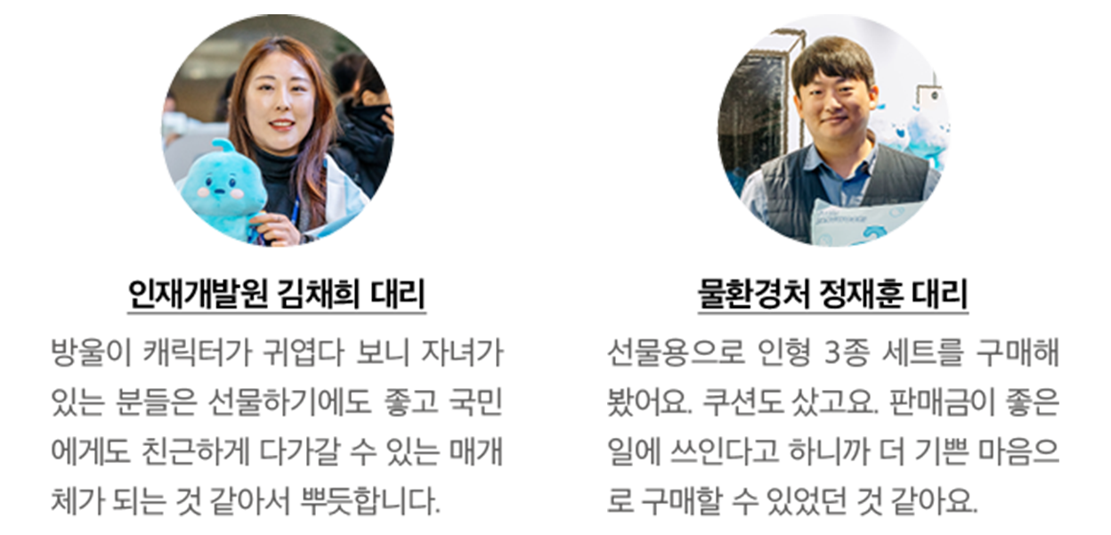 치명적인 귀여움으로 K-water 직원들의 마음을 뒤흔든 방울이는 지역사회에 따뜻한 마음도 전한다. 방울이 팝업스토어를 통해 발생한 수익금은 지역사회 사회공헌활동에 쓰일 예정이다. 이 점이 K-water 임직원들이 방울이 굿즈를 아낌없이 구매하게 된 이유 중 하나. 기부를 하고 싶은 마음은 있지만 개인적으로 기관을 찾기도, 절차를 알기도 어려운 사람들을 위해 K-water가 방울이 굿즈로서 가교 역할을 해준 것이다. 방울이가 전하는 마음은 이뿐만이 아니다. 팝업스토어에서 방울이 굿즈를 구매하는 임직원들 중 상당수는 자녀에게, 연인에게, 친구에게 선물을 주기 위해 굿즈를 구매했다. 모두가 풍성한 연말이 되기를 바라는 K-water의 따뜻한 마음이 방울이를 통해 전해지는 듯하다.