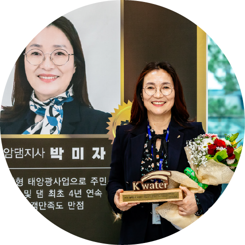 주암댐지사 박미자 과장은 1984년 여수권지사로 입사해 40여 년 가까이 K-water에 재직 중으로 지난 2008년부터 주암댐지사에서 근무하고 있다. 그녀는 주암댐지사에 근무하며 공사 최초로 댐 주변지역의 폐교를 활용해 K-water형 랜드마크인 주민 자립형 종합복지 플랫폼(생산-판매-홍보-일자리) ‘승주에코마켓’을 건립하여 매년 수익률의 20%(약 1,500만 원)를 지역사회에 환원하였다. 또한, 승주에코마켓은 지역 주민들의 새로운 일터로 자리매김하여 2022년 기준 총 783명이 이곳에서 일자리를 찾았다. 이와 함께 지역상생을 위한 사회적기업으로 ‘송광으레’를 탄생시켰다. 인구고령화, 지역경제 침체 등을 극복하기 위해 지역 농산물을 활용한 친환경 장류마을인 송광으레를 통해 지역 브랜드를 육성하고 200여 마을 주민 및 주민 880세대가 참여해 총 17억 원이라는 성과를 이끌어냈다.