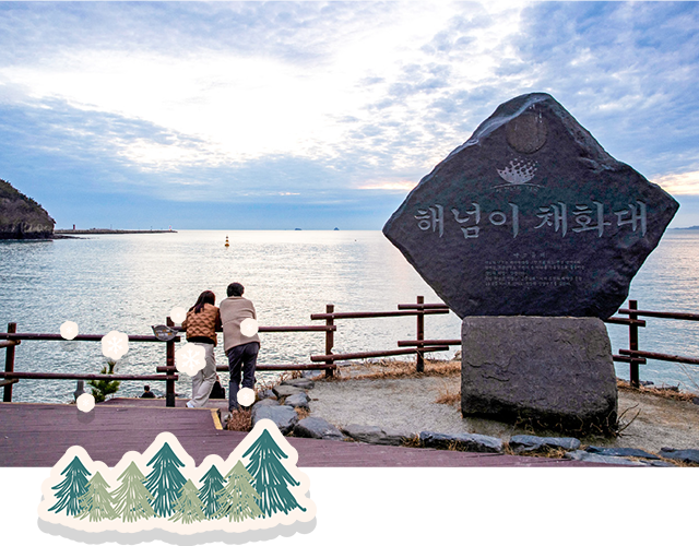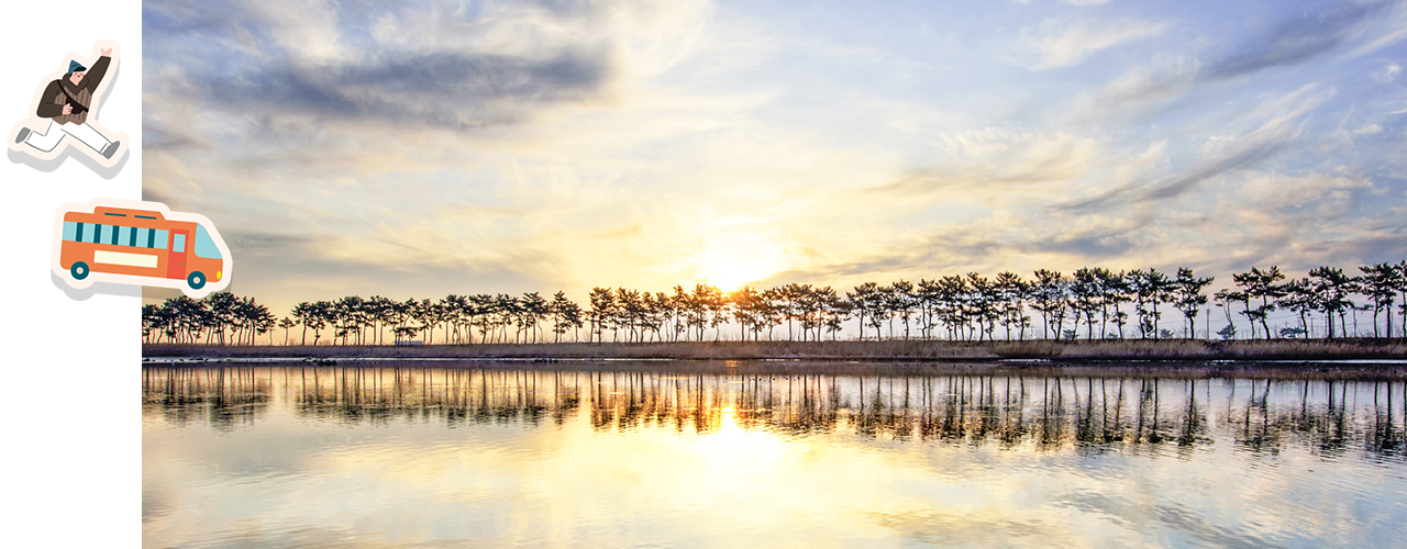 고즈넉한 섬 마을의 자취를 그대로 간직하고 있는 계화도. 영화 ‘실미도’의 촬영지이기도 했던 이곳은 본래 내륙과 완전히 동 떨어진 섬이었다. 그러다 1963년에 이루어진 간척사업을 기반으로 간척지가 조성되었고 지금은 버스로 왕래할 수 있다. 섬에서 육지가 된지 수 십년이 흘렀지만 여전히 계화도라는 이름을 간직하고 있다. 부안을 대표하는 쌀 브랜드 ‘계화미’가 바로 이곳에서 생산되는 쌀의 이름이다. 일출 명소로 알려진 만큼 오전이면 계화산에서 일출을 보고 내려온 이들로 북적이고 백합죽, 백합국 등의 아침 식사를 위해 문을 여는 식당들로 분주하다. 계화산에 오르지 않아도 곳곳에 일출을 감상할 수 있는 포토존이나 의자가 설치되어 있다. 포토존에서 정면을 바라보면 빼곡히 수놓은 소나무가 일렬로 줄지어 있고 소나무 너머로 해가 떠오른다.이 광경을 카메라에 담기 위해 전국에서 사진가들이몰려들곤 한다.