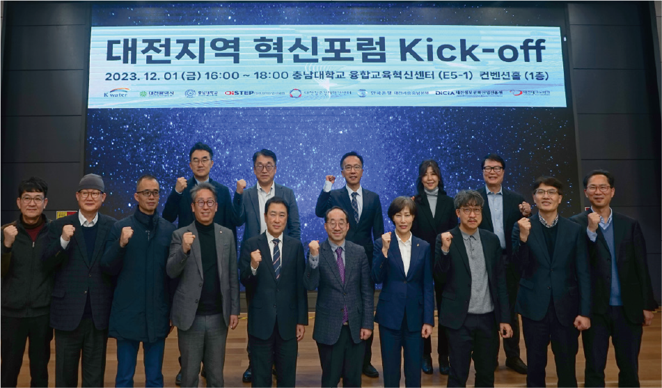 K-water and local innovation organizations based in Daejeon launched the Daejeon Innovation Forum on December 1, 2023 to support Daejeon’s transformation into a global innovation city and mobilize the local resources of the city. Consisting of K-water, Chungnam National University, Daejeon Metropolitan City Government, Daejeon Institute of Science and Technology for Enterprise and People, Daejeon Creative Economy Innovation Center, and Daejeon, Sejong, and Chungnam branch offices of the Bank of Korea, the forum was launched as part of efforts to support the government policy of promoting the “new local era.” K-water intends to identify specific tasks and implement them by forming a network of local innovation leaders.