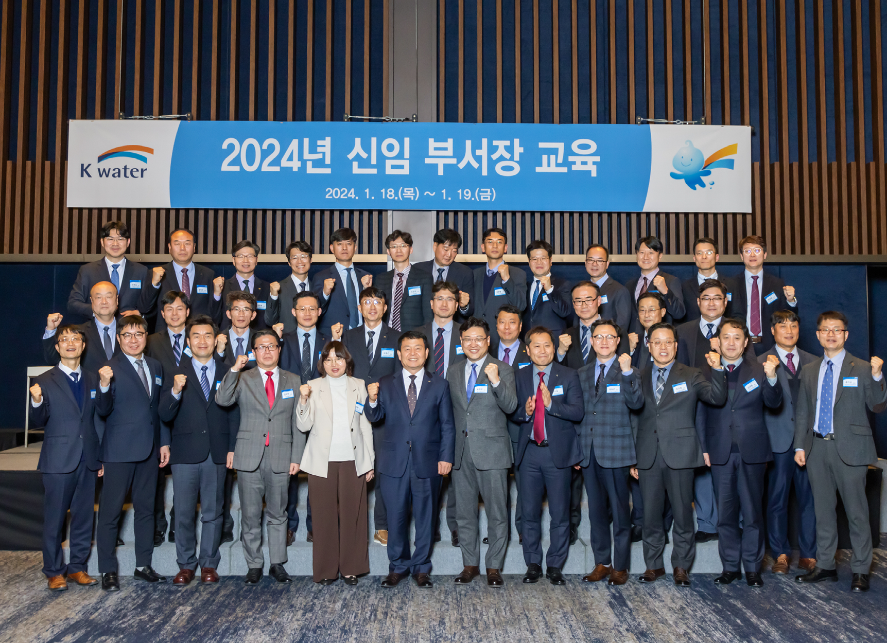A training session was held on January 18 and 19 for newly appointed department heads who will lead the “new era of water” and attended by President Yun and 33 department heads, the first new department heads ever appointed by the president since his inauguration. During the sessions, they shared their ideas on the leadership and mindset they need to realize the new vision of “a global corporation leading the response to climate crisis.” The highlights of the session included the presentation of certificates of appointment, dialogue with the CEO, and lectures on leadership, role of leaders for a fair K-water, and image and speech skills for an effective, respected leader.
