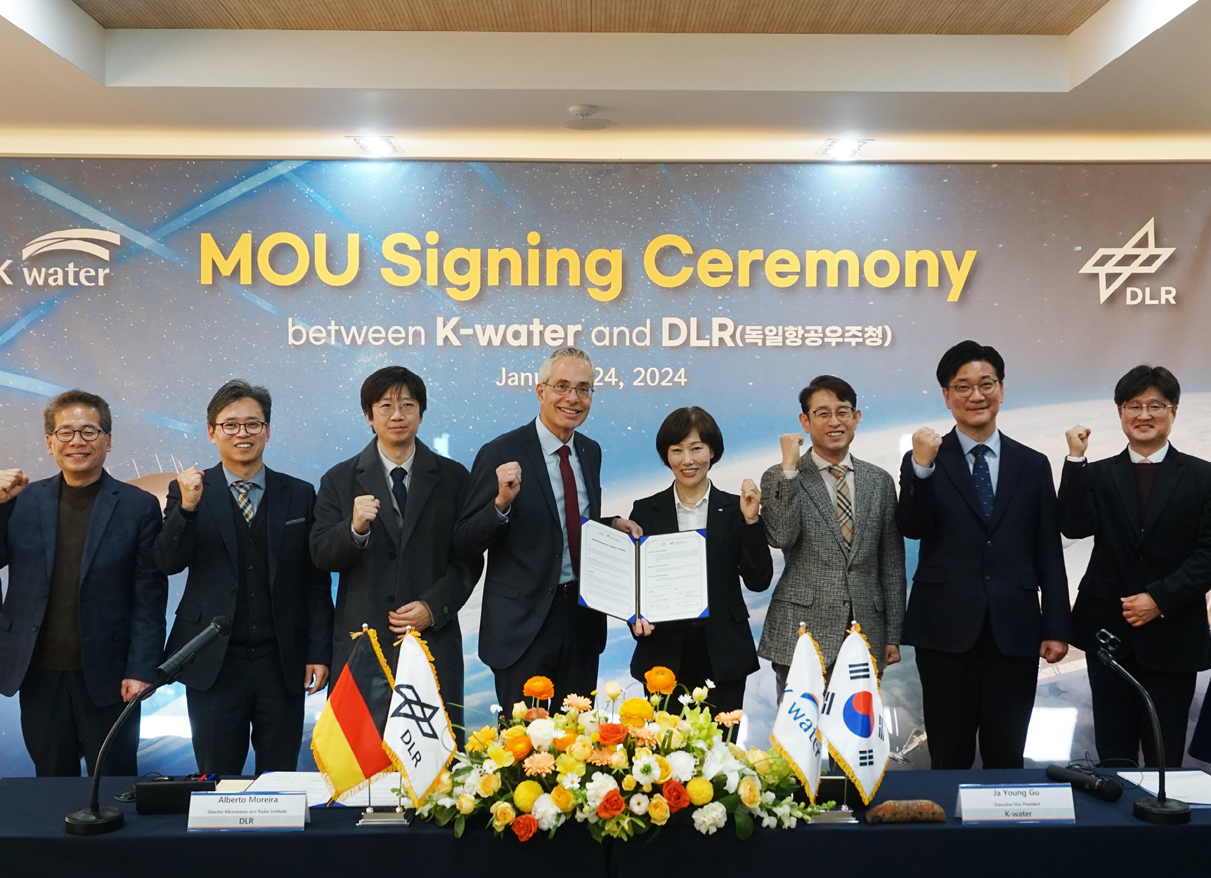 K-water and German Aerospace Center signed on January 24 an agreement for the development of technology to optimize the quality of image radar of water resources satellites in order to improve the ability to respond to floods, droughts, and other water disasters. By signing the agreement on joint international research to develop key technology for the qualification and improvement of water resources satellites, K-water intends to secure top-quality image radar and build a sophisticated technology system. The agreement is expected to allow K-water to create a stable operation environment for a water resources satellite scheduled for launch in 2025 and secure its status as a global leader in water resources satellite