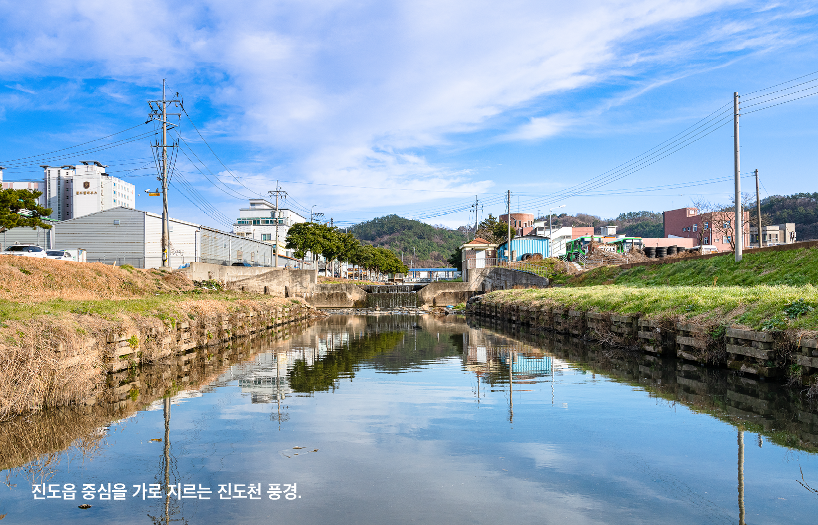진도 읍내를 가로질러 흐르는 진도천은 드넓은 해창들 사이를 풍경 좋게 흘러, 천천히 산책 삼아 걷기에 좋다.