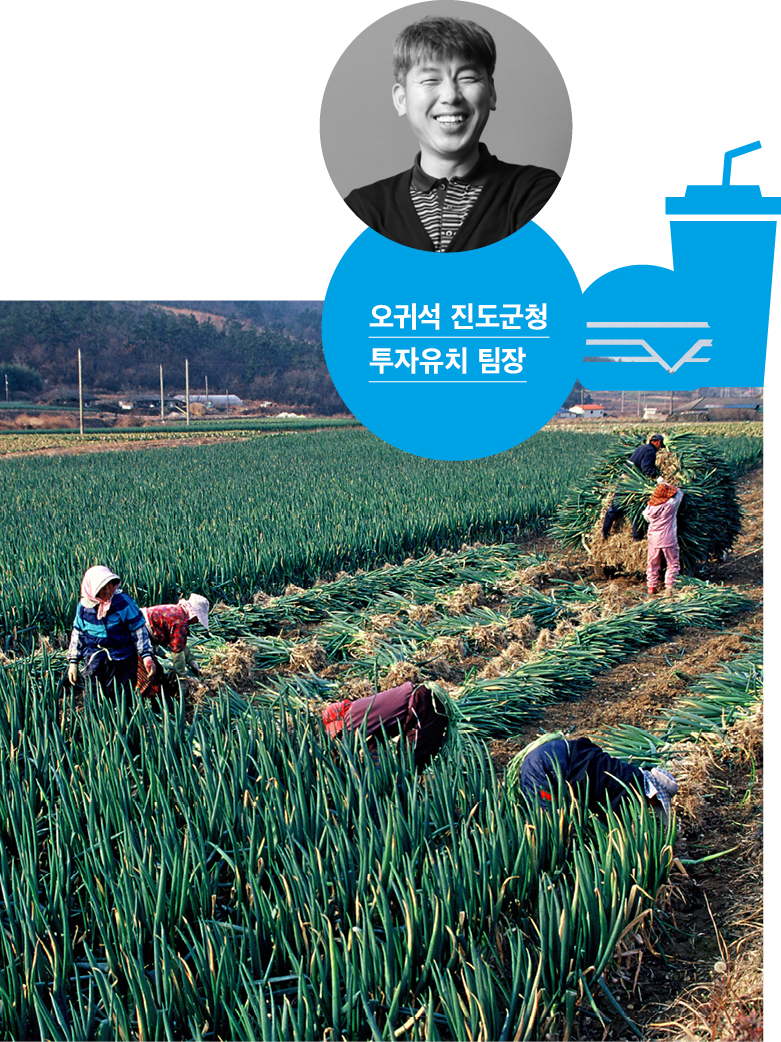 작년, 글로벌 패스트푸드 프랜차이즈 맥도날드가 진행하는 ‘한국의 맛 프로젝트’의 세 번째 버거가 모습을 드러냈다. 바로 전라남도 진도의 대파로 만든 ‘대파버거’. 진도는 겨울 대파 전국 재배량의 30~40%를 차지하는 최대 산지로, 한 해 4만 톤 정도 생산된다. 당시 진도군청 기획홍보실 오귀석 팀장은 생산량 대비 낮은 인지도 등으로 빛을 발하지 못한 대파를 홍보하기 위해 발 벗고 나섰다. 진도 대파를 활용한 간편식부터 시작해 맥도날드와 손을 맞잡고 대파버거까지 출시했다. 대파버거는 150만 개 이상 팔리며 소위 말해 대박이 났다. “대파버거 출시 이후 대파 크림 과자, 대파 치즈 베이글, 대파 베이컨 크림치즈 등 다양한 제품이 출시되고 있습니다. 무엇보다 농민들이 힘들게 생산한 특산품이 제값을 받고 판매되는 것이 기뻐요.” 현재 오귀석 팀장은 인구정책실로 옮겨 투자유치 업무를 맡고 있으며, 공직자로서 지역의 미래를 바꾸기 위해 더욱 열심히 임하겠다는 말을 전했다.