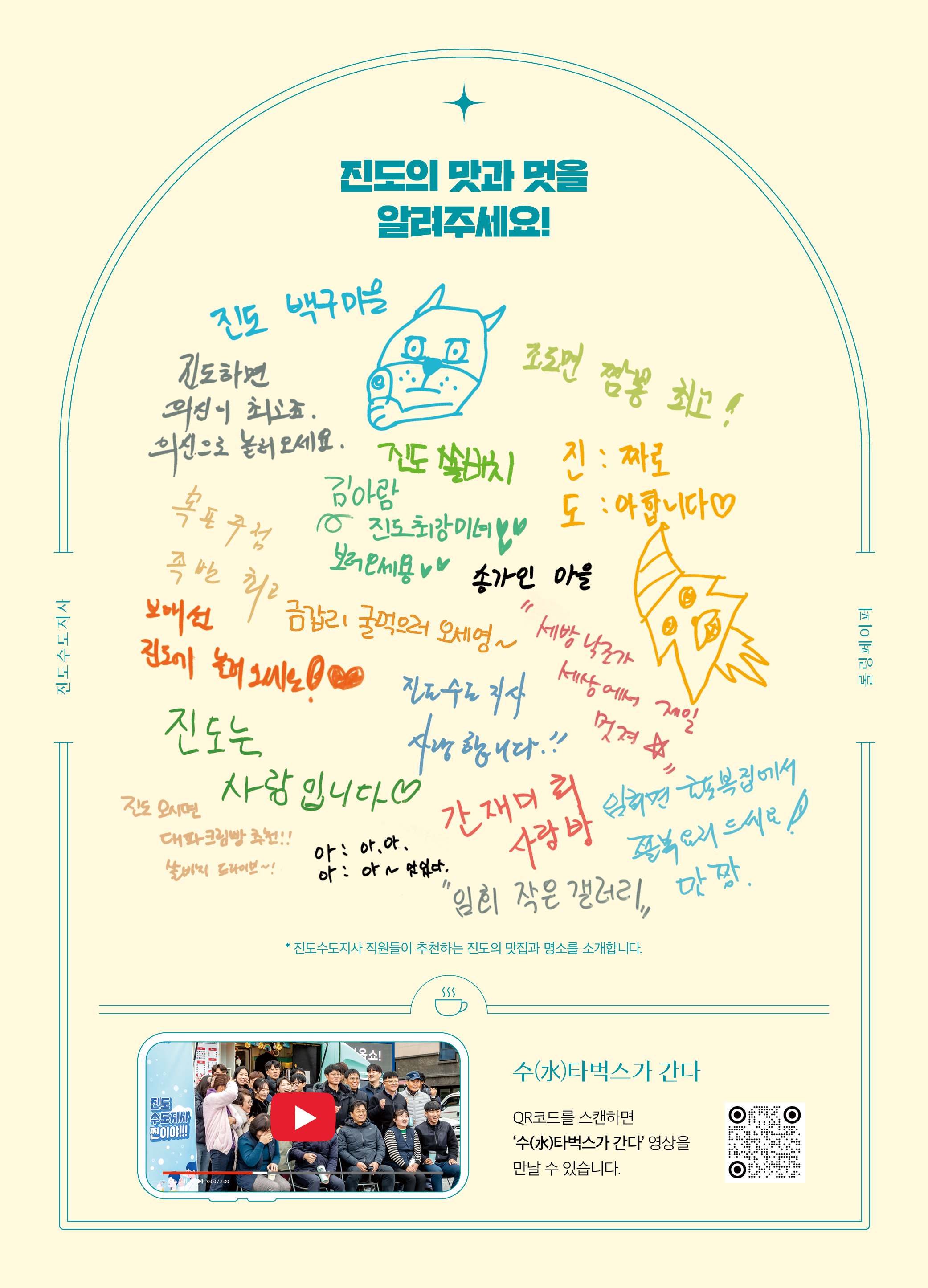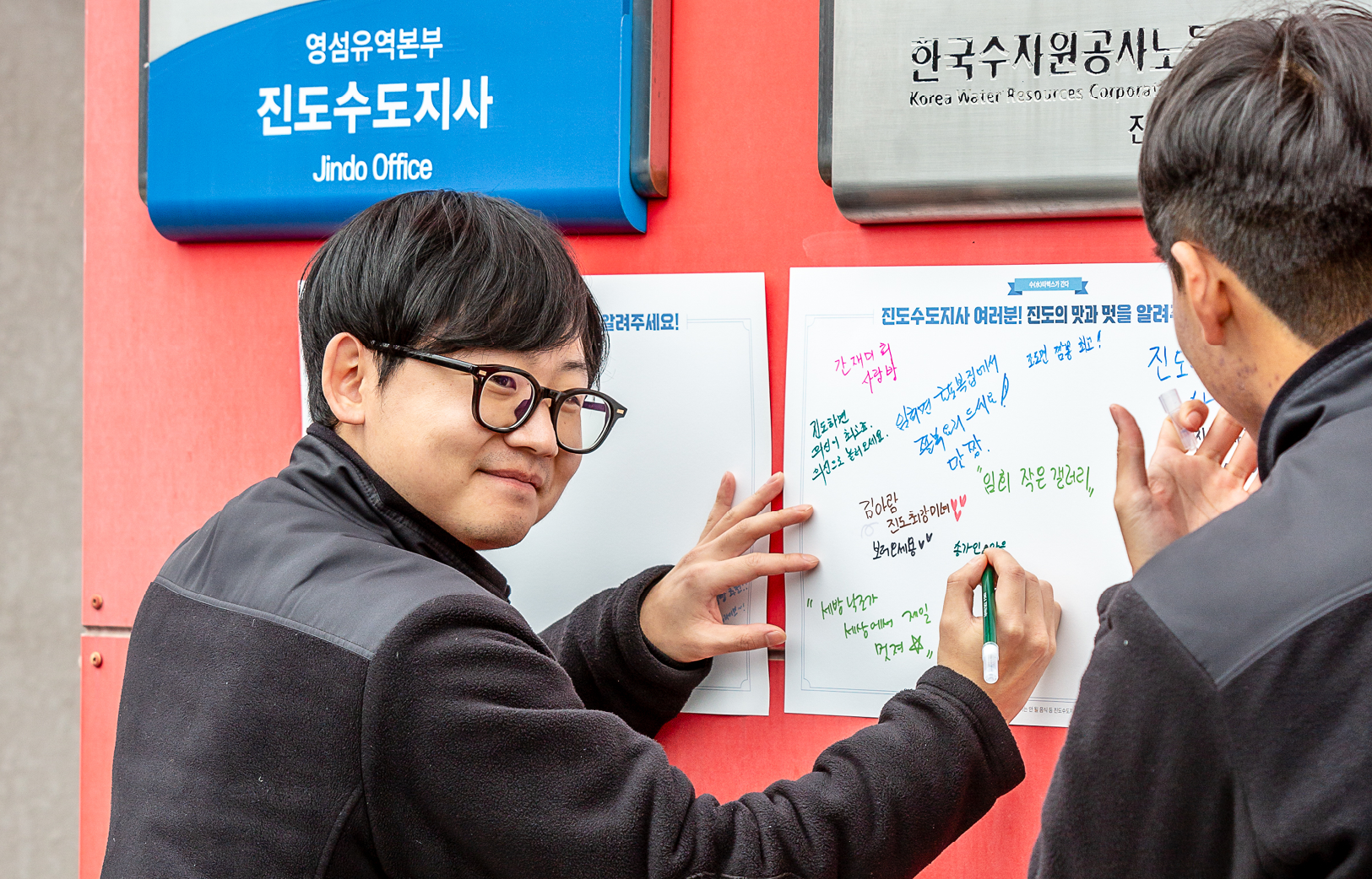 아직 상수도가 보급되지 않은 섬 등에서는 지하수나 우물, 빗물 등 마을 수도시설을 활용하고 있다. 전라남도 진도 또한 십여 년 전까지만 해도 비슷한 상황이었다. 진도군민들은 상수도가 공급되기 전까지 마을 지하수를 공동으로 이용했지만, 가뭄 때면 지하수 물이 고갈되어 제한 급수를 실시하는 등 많은 불편을 겪어왔다. 그러다 2013년 K-water가 진도군과 지방상수도 운영효율화사업 실시협약을 맺고 지방상수도 위·수탁 운영을 시작했다. 그렇게 진도수도지사(구 진도수도관리단)가 탄생한 것. 진도수도지사는 그간 상수도 미보급 지역이었던 고군면 하율마을에 개인 급수를 설치하고, 2017년에 드디어 상수도 보급률 100%를 달성했다. 이어 고군면 하율마을 전체에 수도 계량기를 지원하고 노후되거나 일부 부식된 급수관로를 새롭게 매설하기도 했다. 이러한 진도수도지사의 노력으로 K-water가 위수탁 운영 중인 지방상수도 22개소를 대상으로 실시한 고객만족도 조사에서 전국 1위를 달성하는 쾌거를 이루기도 했다. 고객들과 가까이 교류하는 진도수도지사는 고객만족 CS팀을 구성해 찾아가는 고객간담회와 워터코디제 등을 실시하고 있다. 특히, 가정방문 수돗물 안심 확인제 서비스는 진도군 상수도 행정 서비스의 질을 한 단계 높였다는 평을 받고 있다. 2016년도와 2018년, 2019년도에 이어 2021년, 2022년에도 꾸준히 고객만족도 1위를 차지한 진도수도지사는 앞으로도 진도군과 연계해 상수도 취약계층 병물 지원, 환경정화 활동 등을 펼쳐 지자체와 군민들에게 긍정적인 영향력을 보일 예정이다.