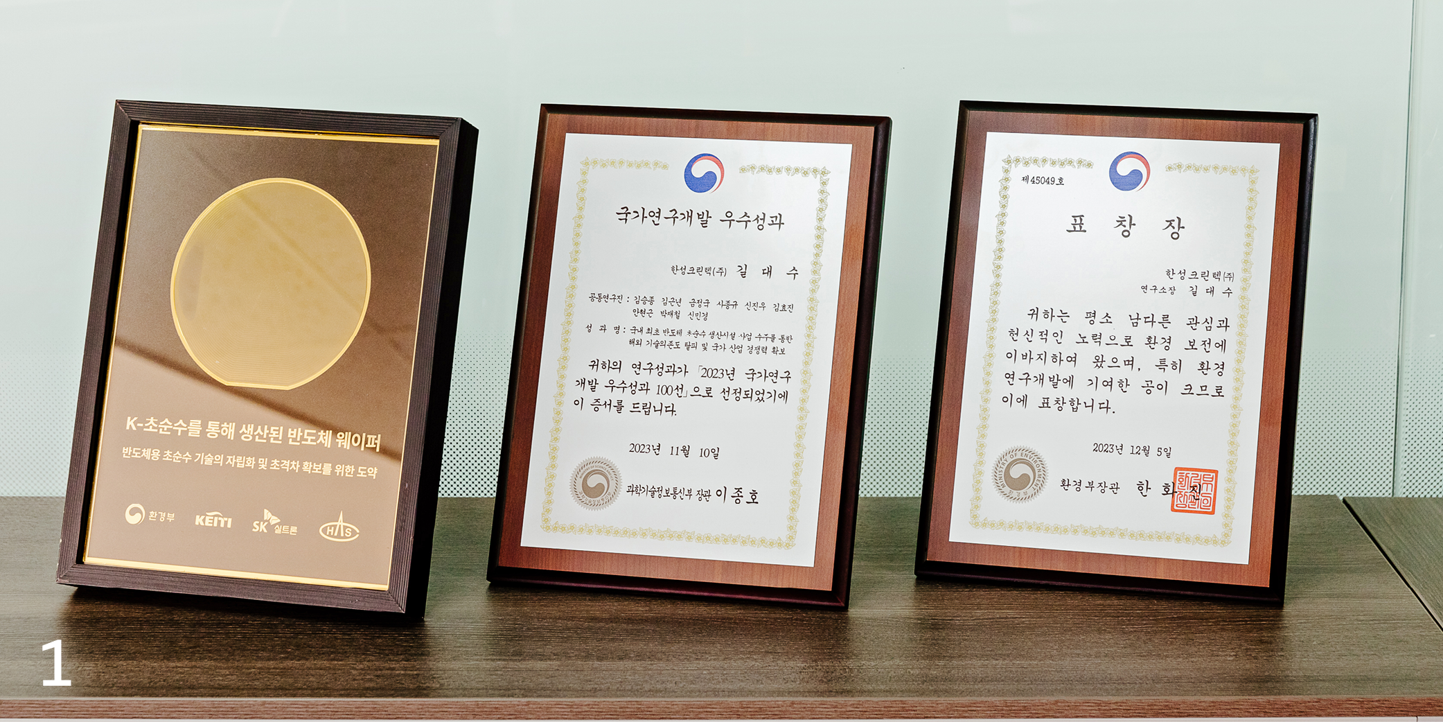 한성크린텍은 K-water와 함께 수요처의 요청에 따라 우선 공급이 필요한 1차 라인(1,200톤/일)을 구축 완료했으며, 수요처 성능 검증 후 실제 공급 및 웨이퍼 생산을 차질 없이 진행 중이다. 이어 현재는 2차 라인(1,200톤/일) 시운전을 진행 중이다. 한성크린텍은 K-water와의 협업 결과 지난해 ‘환경부 R&D 우수성과 20선 최우수 과제’ 및 ‘과기부 국가연구개발 우수성과 100선’에 선정되기도 했다.