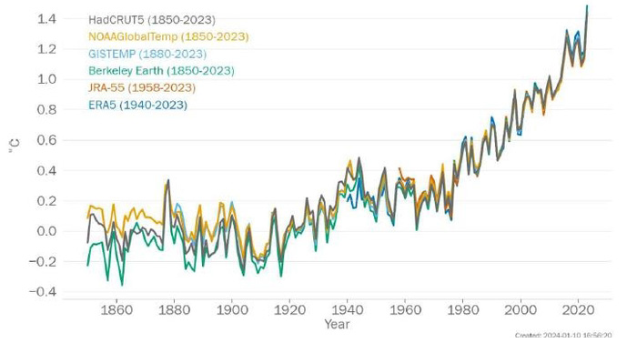 출처: WMO, WMO confirms that 2023 smashes global temperature record