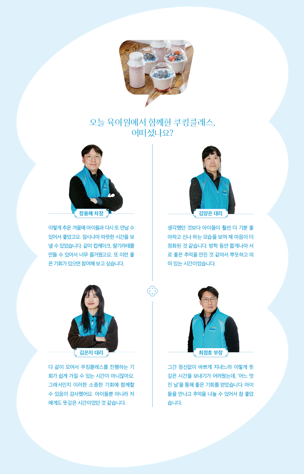 장용해 차장은 자신이 베푼다는 마음가짐보다 그저 아이들이 밝고 예쁘게 자라는 것에 더 큰 기쁨을 느낀다고 말을 전했다.