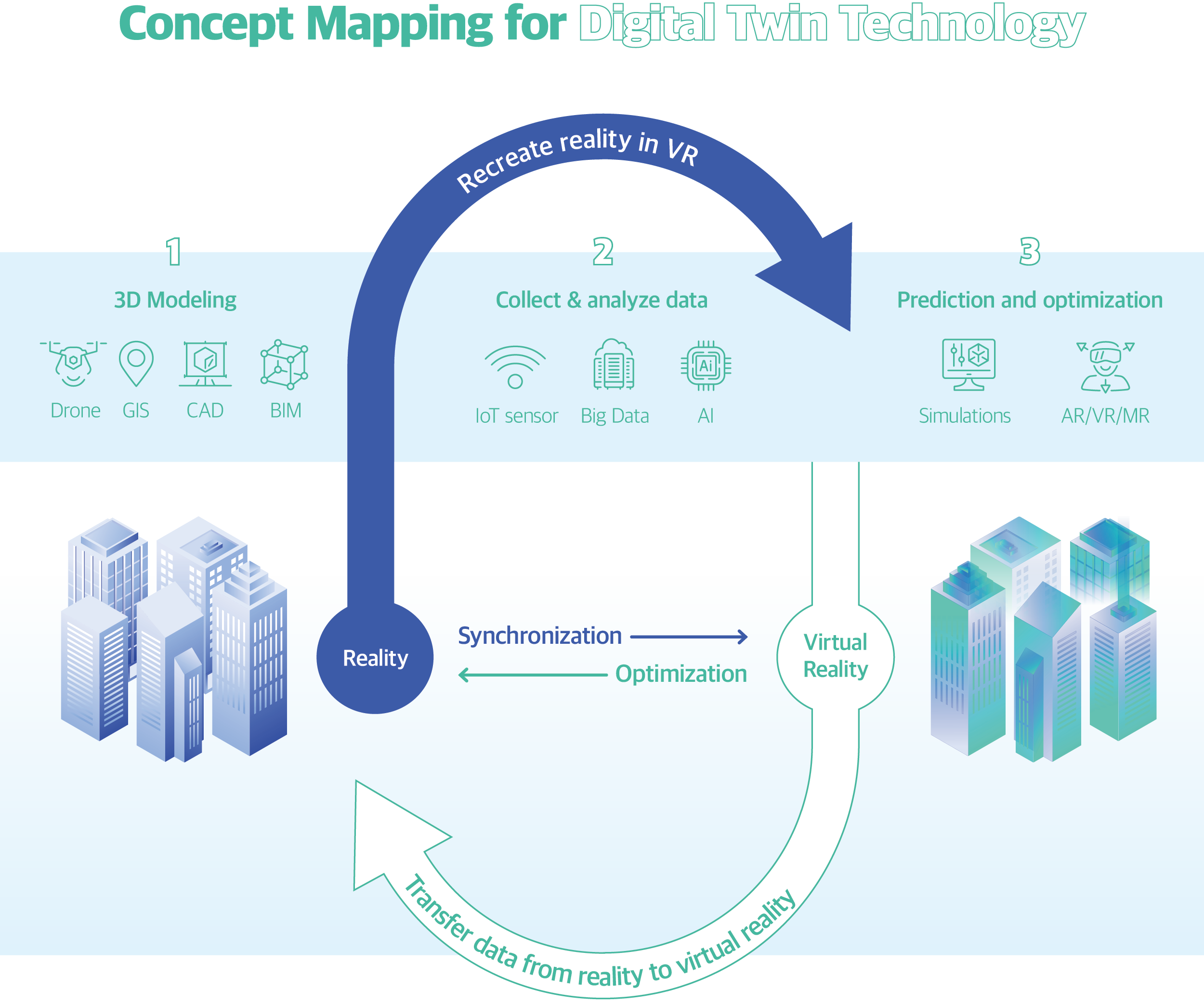 Digital twin is widely used in different industries including manufacturing, energy, construction, and water management. The efficient and intelligent services made possible by digital twin are particularly evident in the public sector that is responsible for the safety and convenience of citizens. In 2018, Korea Land and Geospatial Information Corporation (LX) and Jeonju City created a standard digital twin model and implemented an administrative service model for solving urban and social issues. Daejeon City rolled out “the fire safety service” wherein outdoor and indoor spaces across downtown Daejeon are recreated in a 3D space using digital twin.