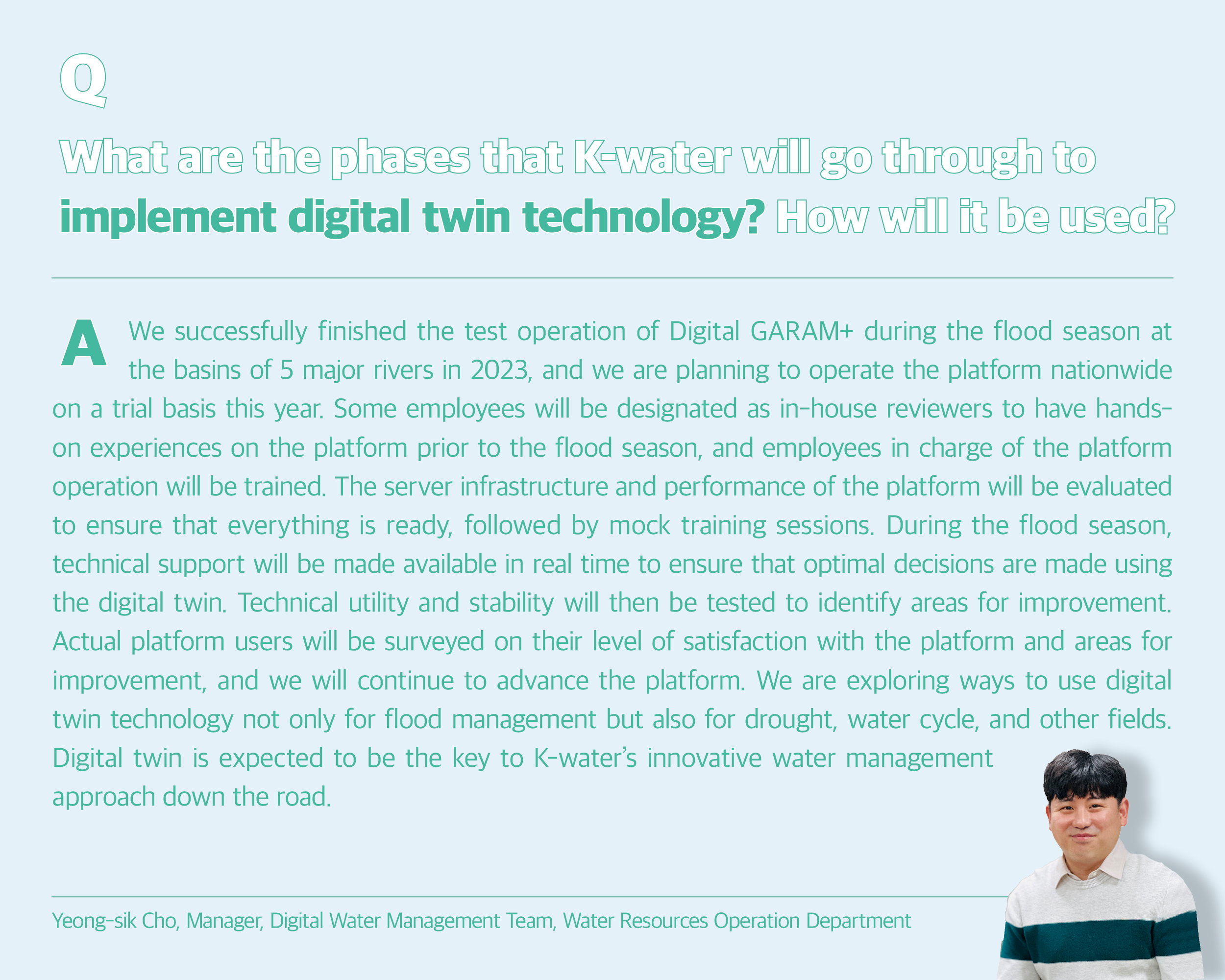In order to deal with growing uncertainty in water management caused by climate crisis, K-water declared a shift to innovative digital water management. To this end, it is operating the digital twin-based Digital GARAM+, a smart dam safety management system, and AI water purification plants.