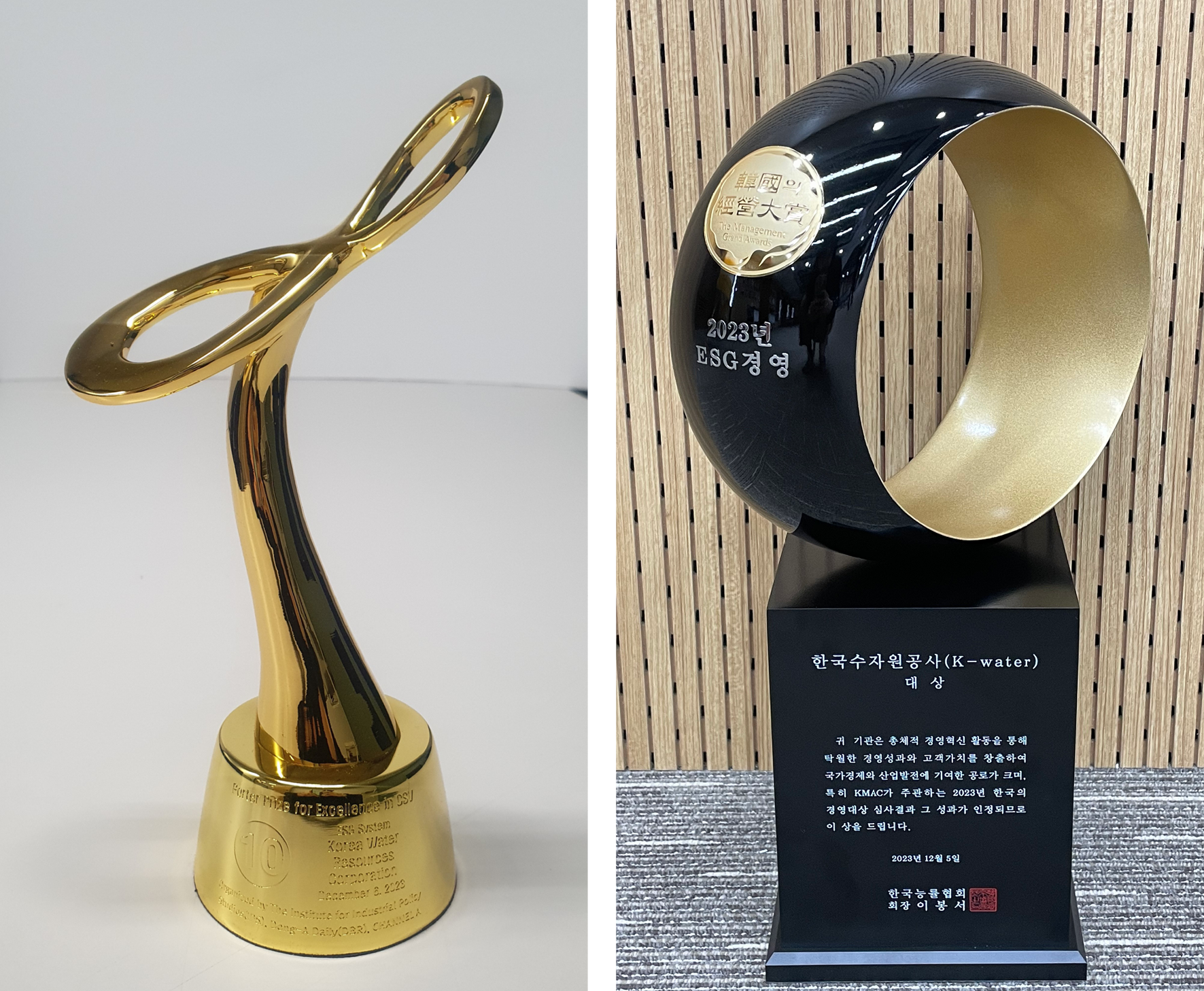K-water has been rated AA in the ESG evaluation for two years in a row in 2022 and 2023 in recognition for its ESG management efforts. It also won the Korea Management Award and the Porter Prize for Excellence in CVS.ESG in 2023 for the innovative results achieved on the back of its systematic and robust ESG management; thus further solidifying its ESG leadership.