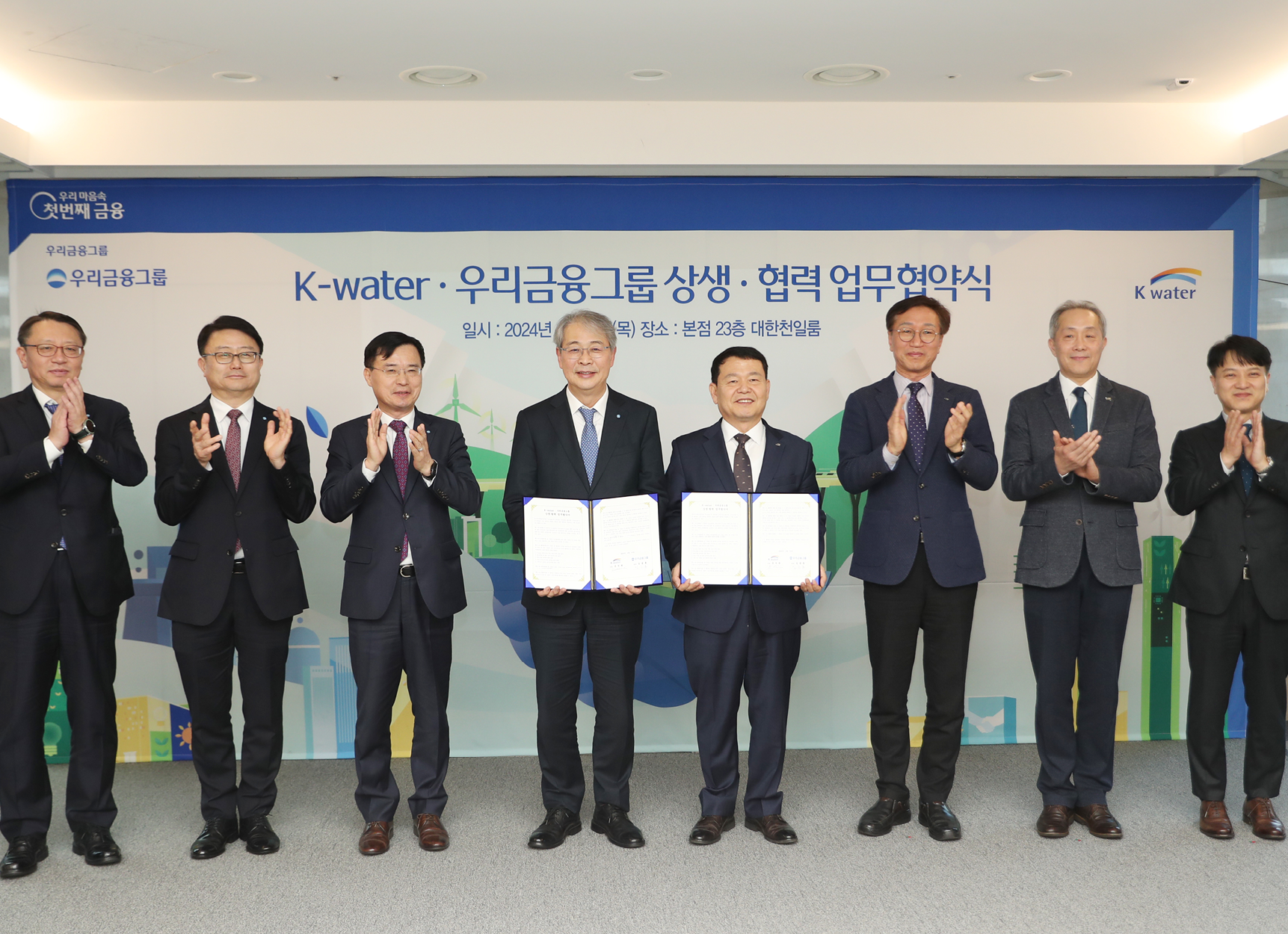 K-water는 지난 2월 25일, 우리금융그룹과 ‘상생·협력 업무협약’을 체결했다. 이번 협약은 양 기관이 중소기업과 소상공인을 위한 상생·협력과 ESG 경영실천에 전략적 연대를 강화하기 위해 체결됐다. 주요 협력 분야는 중소기업·소상공인 상생 지원, 탄소중립 이행 및 ESG 경영실천, 해외사업 협력, 자금조달 및 운영 등 4개 분야이며, 양 기관은 지속해서 세부 협력과제를 구체화할 예정이다.