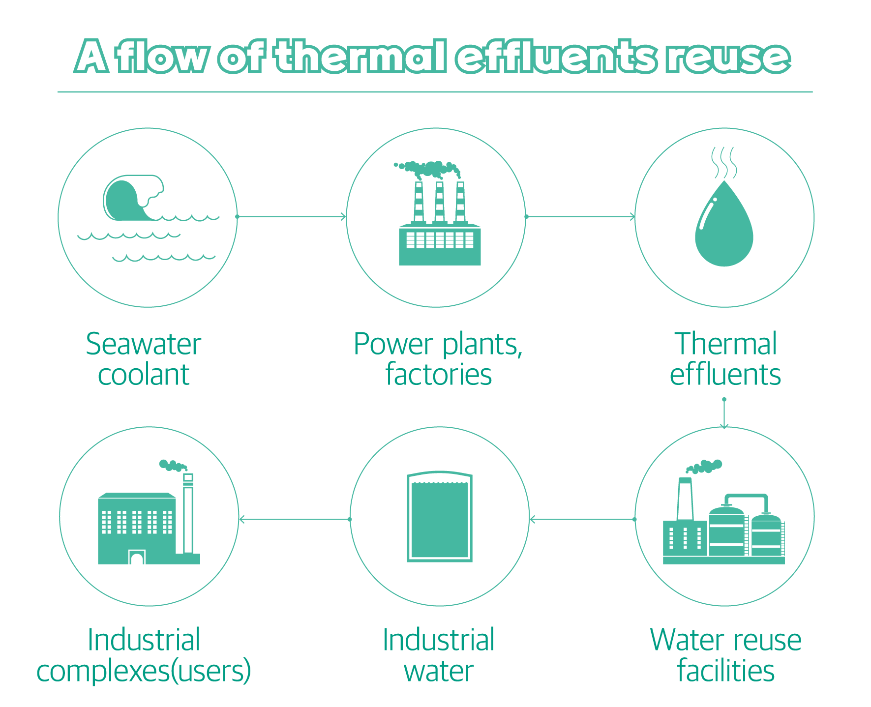The water used in this process remains uncontaminated by external substances as it flows through a completely sealed conduit until it is discharged into the sea. How can we repurpose wastewater as industrial water? The answer to this can be found in the separate Q&A below.