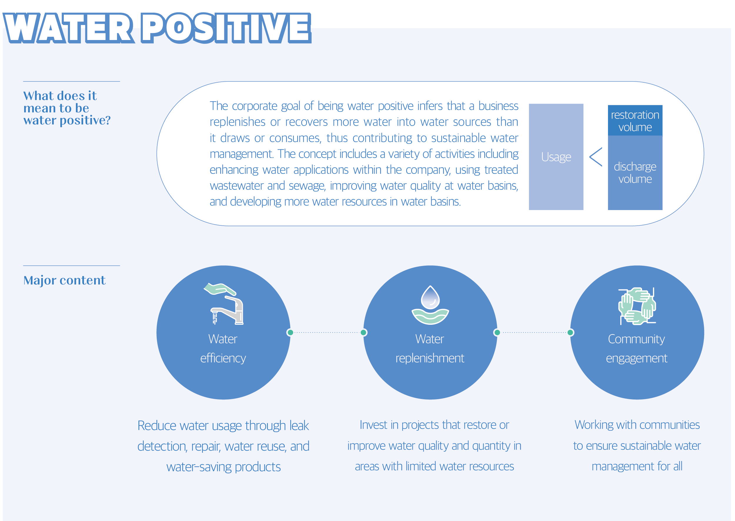 In the face of growing global water demand, water supplies remain largely unstable due to the climate crisis and outdated infrastructure. Although the progress in developing new water resources has been slow, water demand rises at a rapid pace as high-tech industries like semiconductors and secondary batteries continuously advance. Thus, global corporations are taking action to be “water positive”. What does it mean to be water positive? How does it contribute to sustainable water management?