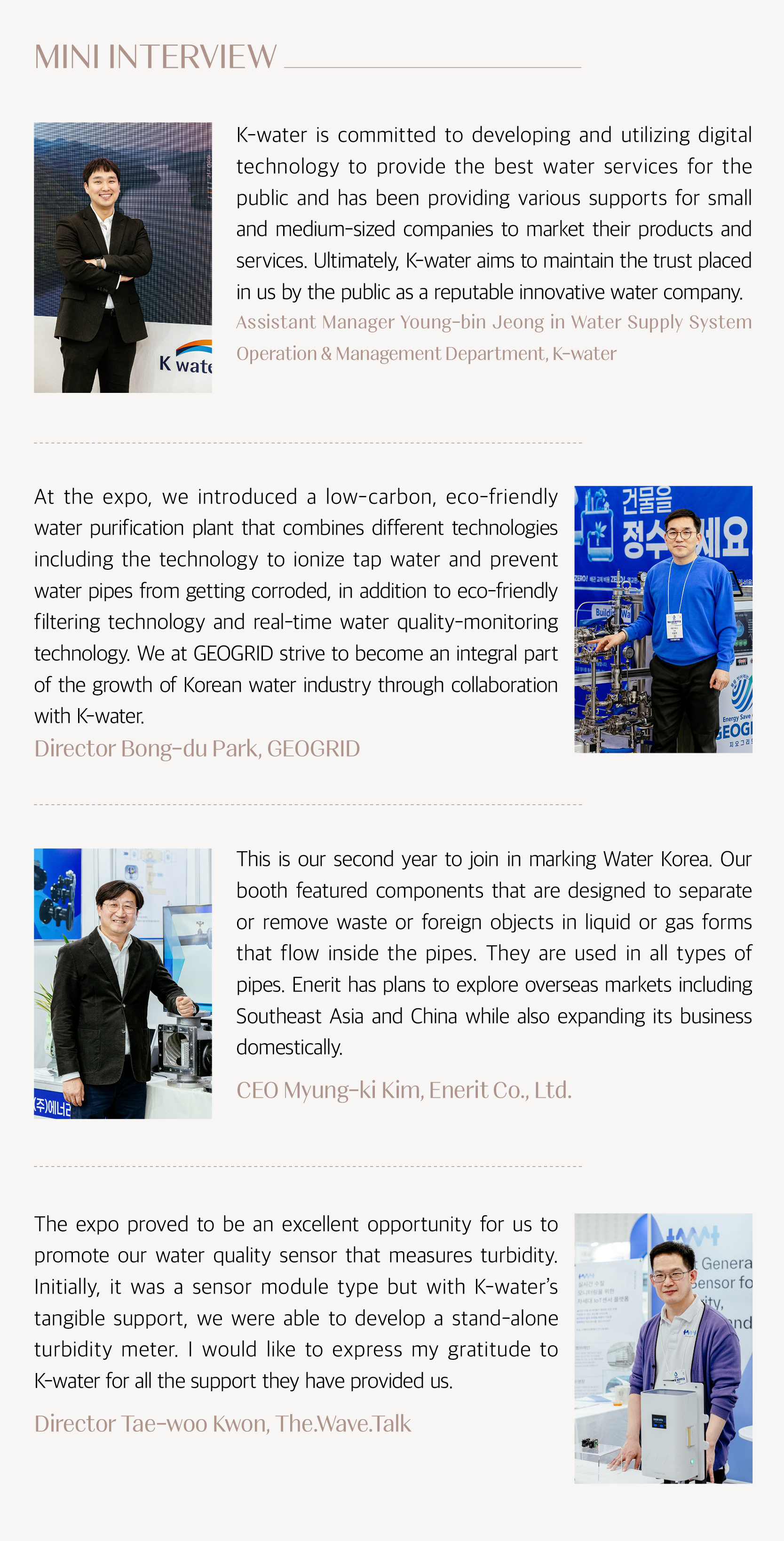 In addition, K-water ran a joint business hall to promote technology owned by its small and medium-sized business partners and help them find potential buyers. More than 20 companies including members of the Overseas Market Development Group and CES Innovation Award winning companies participated in the operation of the hall.