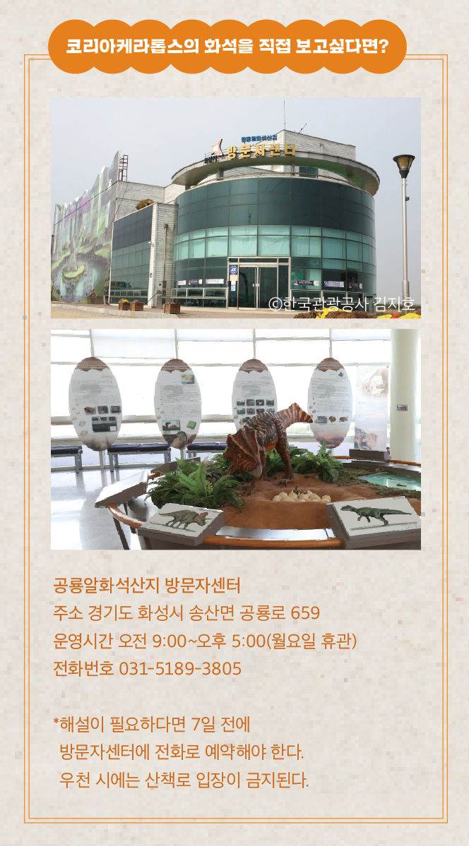 공룡 이름을 줄줄 외우던 6살 조카의 입에서 특이한 이름을 들었다. 이름하여 ‘코리아케라톱스’. 조카의 상상력 속 이름인 줄만 알았는데 아니었다. 우리나라에 실제로 1억 년 전에 존재했던 공룡의 이름이라는 사실. 게다가 이 공룡은 국내 아니 세계 최초의 뿔공룡이라는 점이 놀랍다. 화성시에서 발견된 코리아케라톱스 화성엔시스와 관련된 숨겨진 이야기를 전한다.