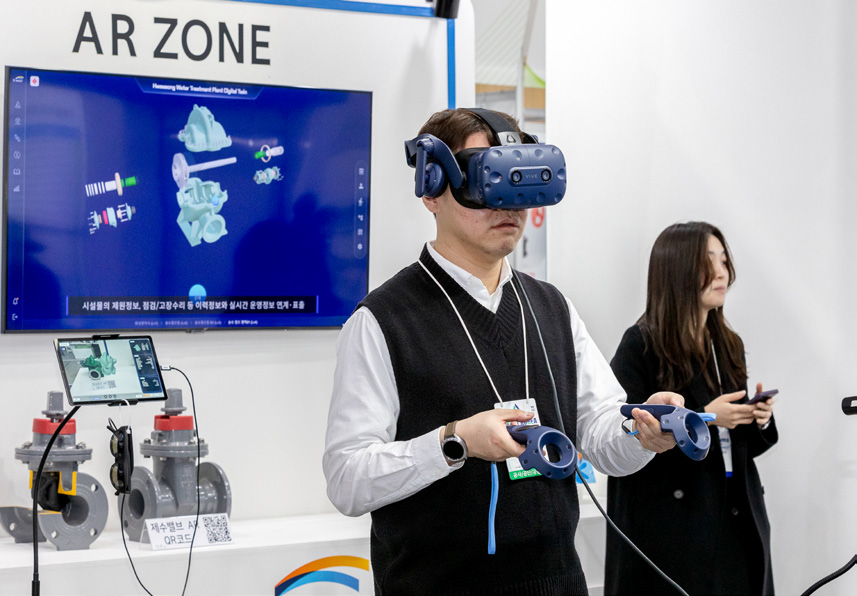 K-water는 ‘국민으로부터 인정받는 혁신 물기업’을 주제로 홍보관을 운영하며 AI정수장, 디지털 트윈, 스마트관망 관리 등 물분야 초격차 기술을 소개했다. 이와 함께 메타버스 및 AR ZONE에서는 K-water의 스마트한 안전관리를 간접적으로 체험할 수 있는 공간이 마련되어 선도적인 미래 기술을 엿볼 수 있었다.