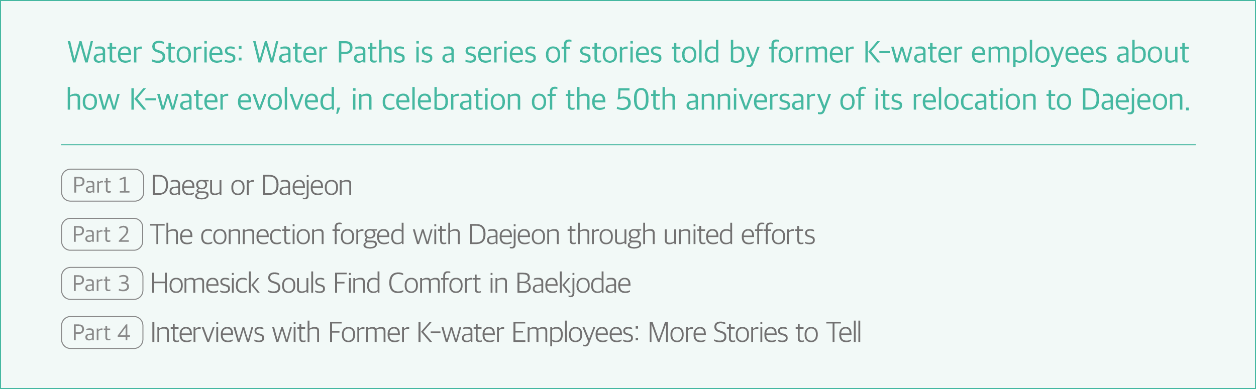 This year marks the 50th anniversary of the relocation of K-water’s headquarters from Seoul to Daejeon. Some of the former K-water employees who worked at K-water prior to the 1974 relocation were asked to share their experiences and memories in an interview.