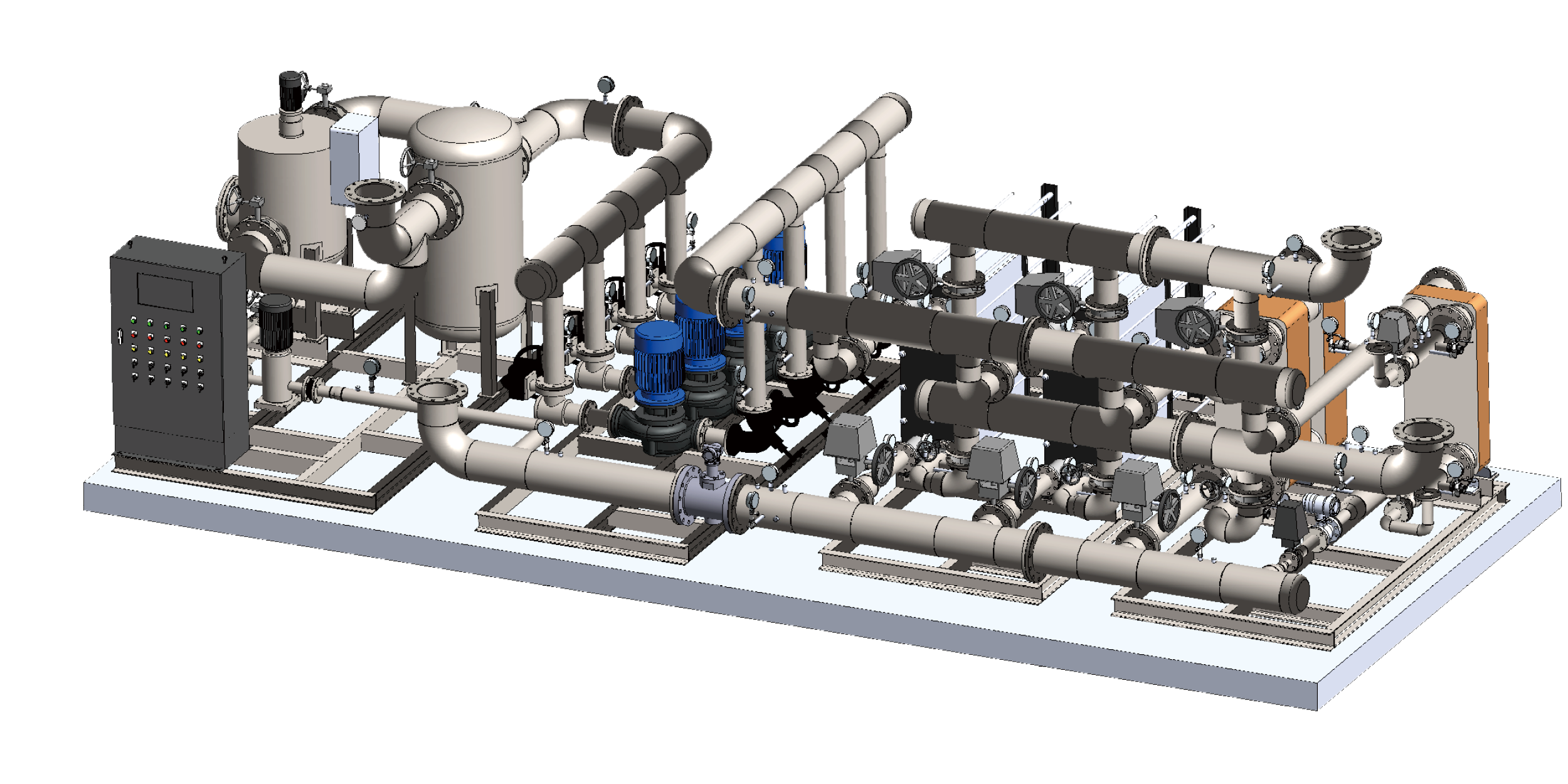 지난 2020년부터 2023년까지 K-water와 함께 ‘수열 냉난방 및 재생열 하이브리드 시스템 기술개발 및 실증 과제’의 공동연구기관으로 참여해 취수 조건을 고려한 열교환 시스템 설계 및 연구 등의 핵심기술을 개발했습니다. 또한 하천수의 오염물질로 인한 부식이나 스케일을 방지하기 위한 친환경 세정 기술도 개발했는데요. 이와 같이 사용 환경을 고려한 제품 개발을 시스템화한 것이 바로 ‘수열회수 열교환 패키지 시스템’입니다. 수열을 이용해 냉난방하고자 하는 건물에 제공하는 것이죠. 실제로 2023년부터 K-water 한강유역본부(과천) 사옥에 수열 냉난방 시스템을 설치해 운영하고 있습니다.