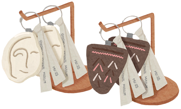 신라의 미소 키링 - 국립경주박물관의 주요 유물 중 하나인 ‘얼굴무늬 수막새’를 일상에서도 만날 수 있다. 온화한 표정 덕분에 ‘신라의 미소’라 불리는 이 유물을 모티브로 제작된 ‘신라의 미소 키링’은 섬세한 자수로 유물의 형태를 구현한 것이 포인트다.
