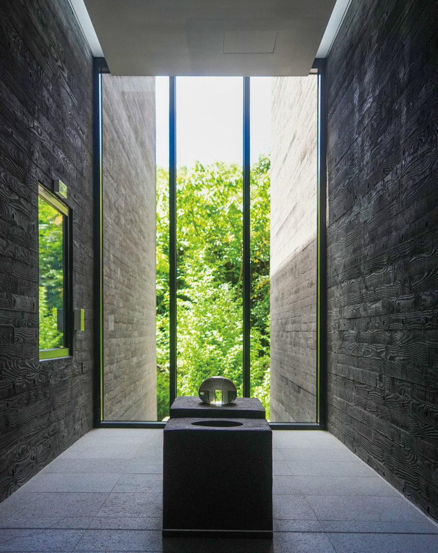 하늘에서 미술관을 바라보면 중정을 기준으로 여덟 개의 건물이 둘러싸고 있는데, 이는 작가가 추구한 회귀의 철학을 표현한 것이다.