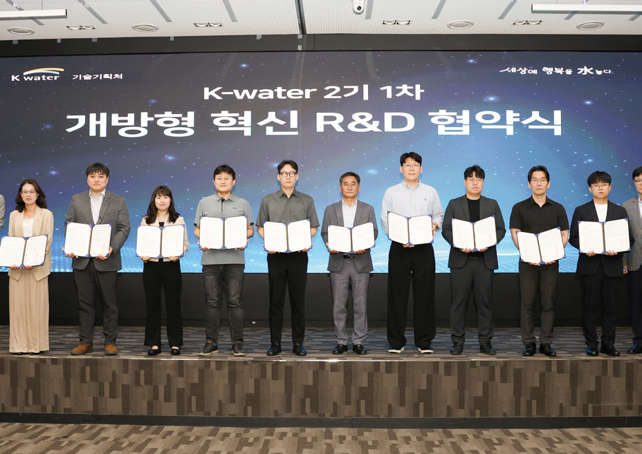 위기 대응력 강화한국수자원공사는 점차 심화하고 있는 기후위기에 대응할 수 있는 미래 혁신 물기술 발굴에 속도를 내기 위해 지난 8월 7일 국내 산학연기관들과 ‘개방형 혁신 연구개발 과제 협약식’을 가졌다.