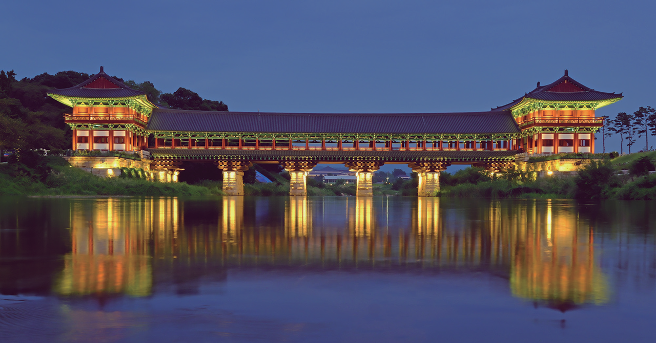 월정교의 진정한 아름다움은 해가 진 뒤에 드러난다. 은은한 조명이 다리와 문루를 비추면, 남천 위로 그 모습이 고스란히 반영돼 마치 신라의 밤 속으로 걸어 들어가는 듯한 환상적인 풍경이 펼쳐진다. 누각에 서면 시원한 강바람과 함께 교촌마을의 야경이 한눈에 담긴다. 월정교의 복원은 단지 사라진 다리를 되살린 것을 넘어선다. 1,300년 전 신라인들이 즐겼을 풍경을 오늘날 우리도 함께 누릴 수 있게 됐다는 점에서 시공간을 초월하는 듯한 감동을 선사한다.