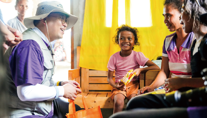 봉사단은 간식, 식료품, 생필품 등이 담긴 키트를 학생들에게 전달하고, 칠이 벗겨진 교실 벽에 새롭게 페인트를 칠하는 등 교내 정비에 손을 보탰다. 방독 마스크를 쓰는 것조차 힘들 만큼 더운 날씨였지만 봉사단원들은 이마에 맺힌 땀도 잊은 채 작업에 몰두했다.