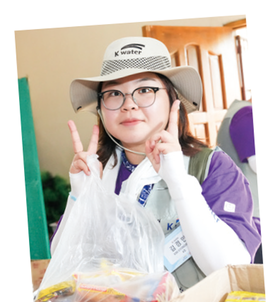 제 손길이 조금이나마 도움이 될 수 있다면 좋겠다는 마음으로 왔는데, 너무 큰 보람을 얻고 돌아가요. 우리로 인해 기뻐하는 아이들을 보며 ‘한국수자원공사가 세계 곳곳으로 의미 있는 일을 하고 있구나’라는 것을 한 번 더 깨닫게 됐어요.