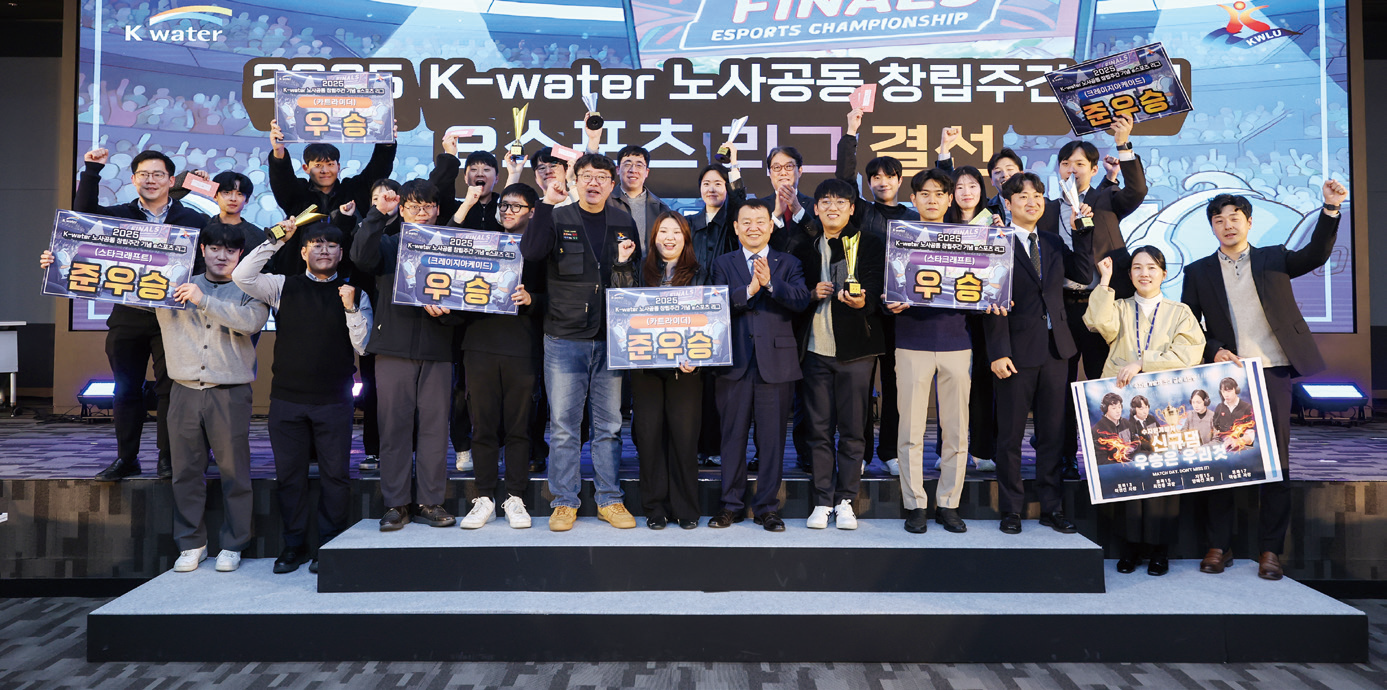 이어 ‘올해의 K-water人’이 발표됐다. ‘올해의 K-water人’은 조직기여도가 높고 한 해 동안 탁월한 성과를 창출해 모범이 되는 우수직원에게 수여되는 상이다. 올해 수상자는 글로벌사업처 박장원 부장으로, 필리핀 앙갓댐 수력발전 사업을 시작해 사업 기반을 다지기까지 기여한 성과가 높이 평가되었다. 이밖에도 노사공동 e스포츠 경연대회가 열려 직원들의 참여와 화합을 더했다. 이번 기념식은 새로운 비전 선포뿐 아니라 직원들간의 소통과 협력의 가치 또한 되새기는 자리였다. 한국수자원공사는 이번 기념식을 계기로 AI 기반 물관리로 반도체 등 국가 전략산업을 지원하고, 2030년까지 AI 물관리 분야 세계 1위 기업으로 도약해 대한민국이 AI 3대 강국으로 나아가는데 기여해나갈 예정이다.