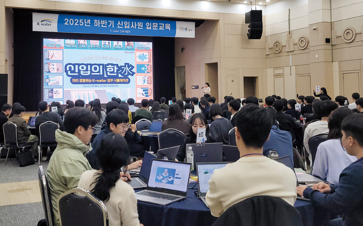 지난 10월 31일부터 11월 20일까지 ‘2025년 하반기 신입사원 입문교육’이 진행됐다. 이번 입문교육은 한국수자원공사의 핵심 사업과 기술을 이해하기 위한 현장 체험형 교육, 현업에서 즉시 활용가능한 공문서 작성 등 실무 교육, 그리고 AI 업무혁신, 안전의식 제고 등 조직의 방향성을 제시하고 관련 역량을 강화할 수 있는 실습 중심의 프로그램으로 진행되었다.