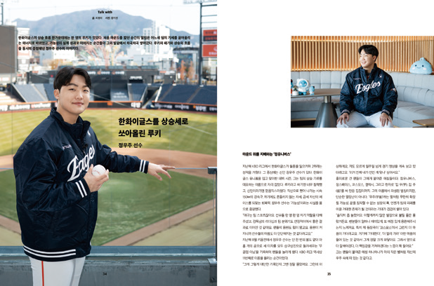 - 제가 제일 좋아하는 한화이글스의 황금 막내! 정우주 선수의 인터뷰가 있어서 반가운 마음으로 정독했습니다. 올해 대전으로 근무지를 옮겨 근무 중인데 그래서 더 반갑고 대전에서 한화는 떼려야 뗄 수 없는 존재라 2026년 대전 근무도 설렙니다. 한화이글스, 올해는 우승 가즈아!