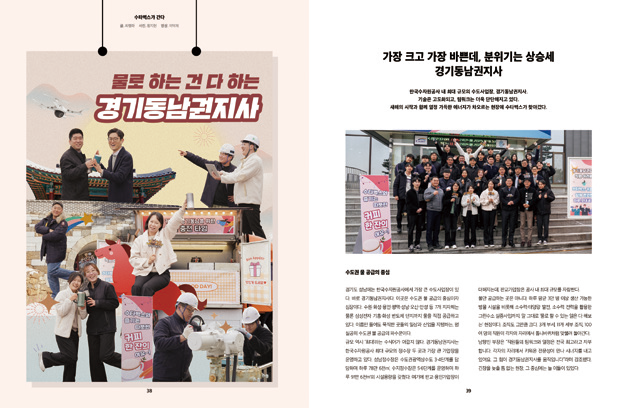 - ‘물로 하는 건 다하는’ 경기동남권지사 직원분들의 단합된 모습과 열심히 일하시는 모습이 인상적이었습니다. 모두가 환하게 웃는 사진을 보니 덩달아 기분이 좋아졌습니다. 경기동남권지사에 박수를 보냅니다. 짝짝짝!