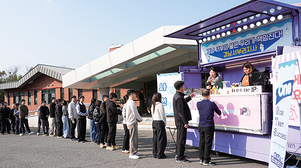 정확한 방향키를 쥐고 현장에서 쏟아지는 변수에 민첩하게 대응하는 경남서부권지사. 파워 넘치는 경남서부권지사를 응원하기 위해 수타벅스가 출발했다.