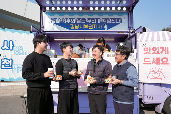 경남서부권지사는 기술 고도화만큼이나 소통에도 진심이다. 지리적으로 3개 수도센터가 분산돼 있는 만큼 소통과 협업이 업무의 성패를 결정짓는 핵심이기 때문이다. ‘물은 멀리 보내도, 소통은 멀어지지 말자’는 이들의 다짐 덕분에 이곳의 물관리는 굳건히 지켜지고 있다.